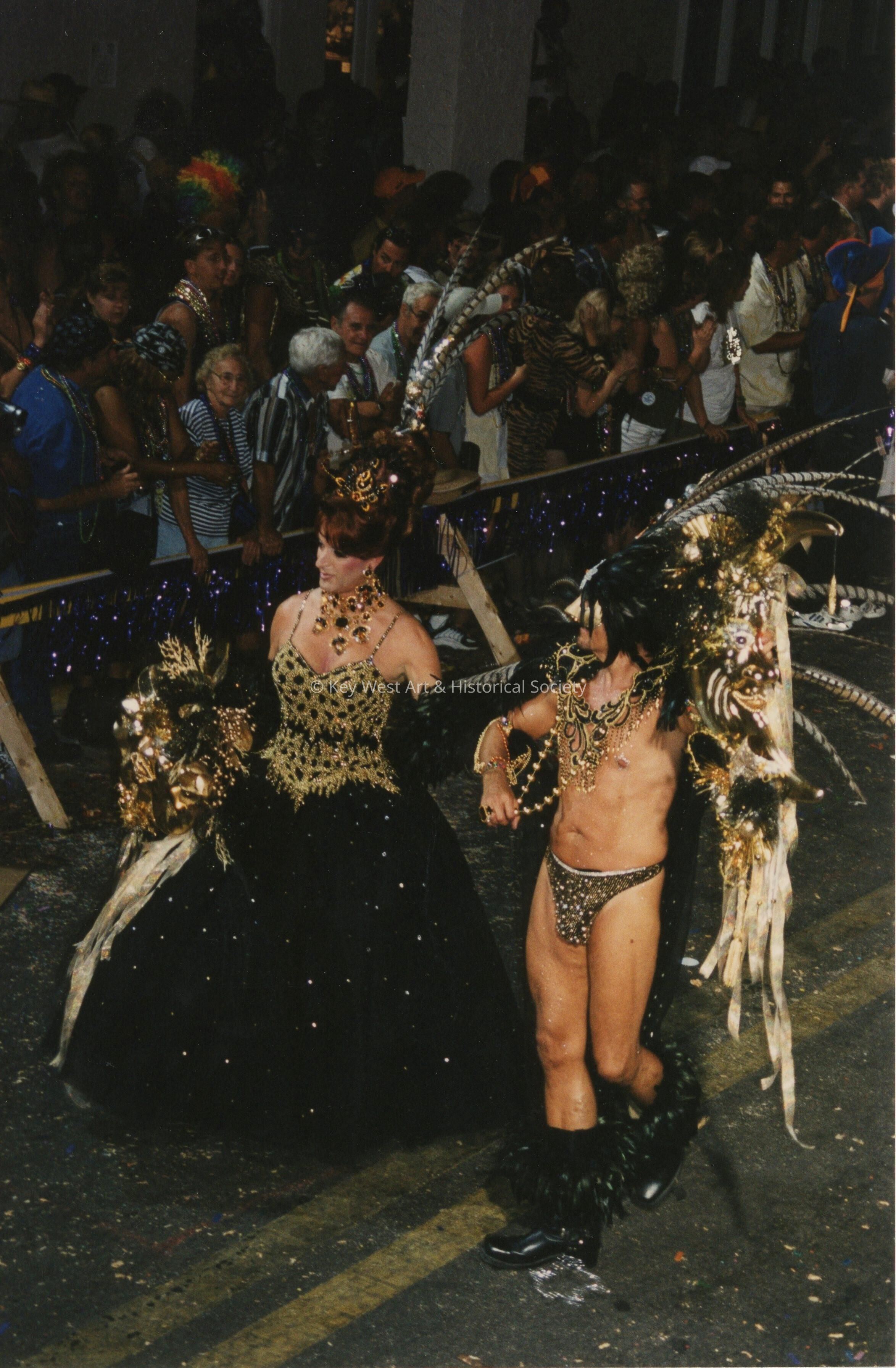 Two unknown people dressed up walking in the parade.Collection