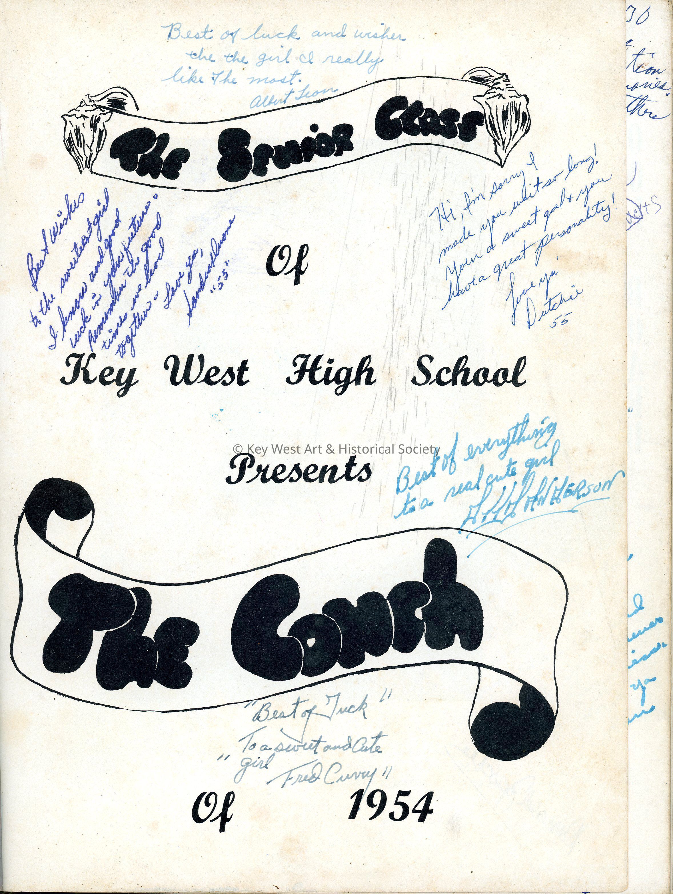 Hardcover 1954 Key West High School yearbook belonging to Gladys Marie Tomandl (nee Barnwell).