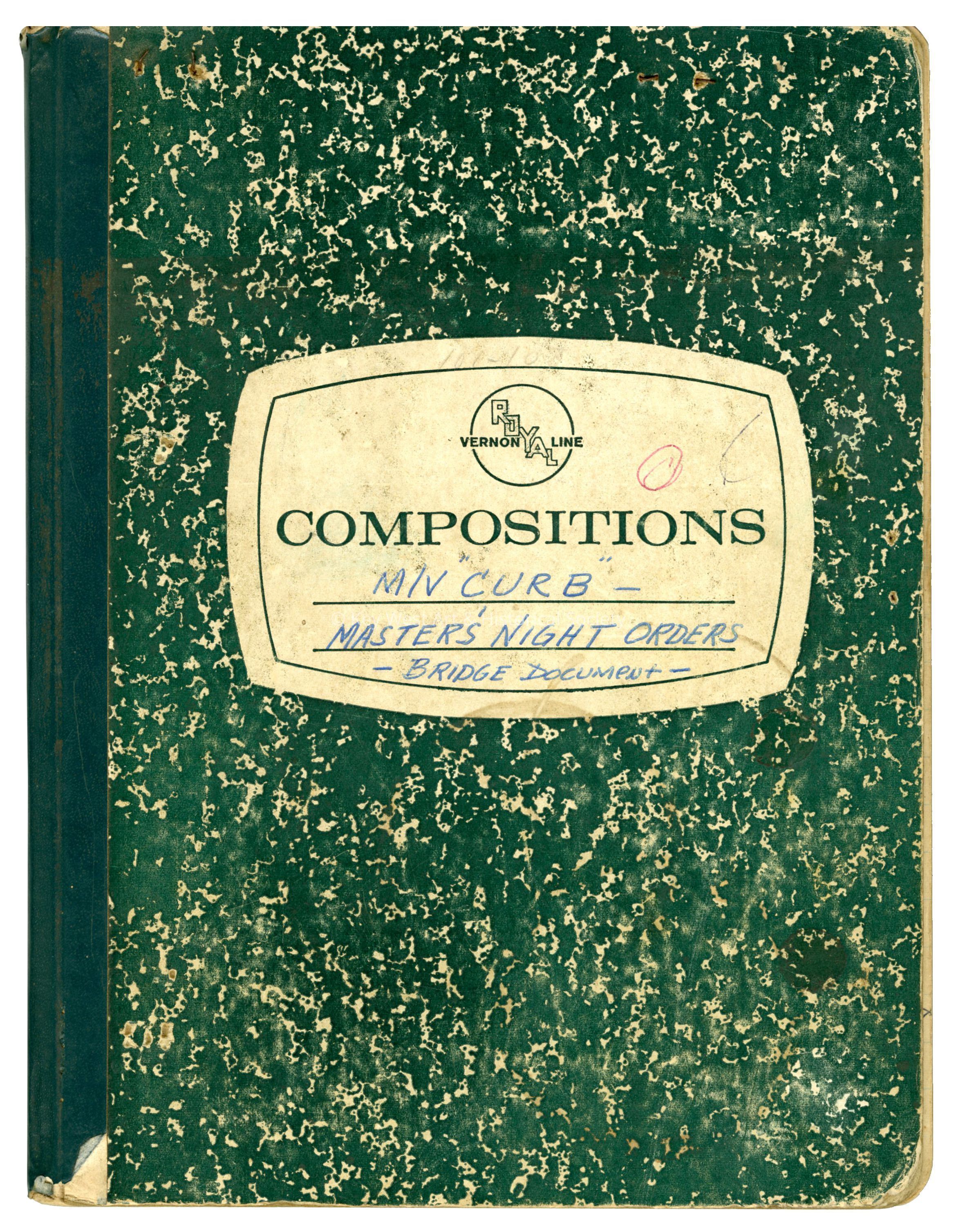 Handwritten notebook containing the Master's Night Orders onboard M/V CURB. The vessel served in Key West on cable laying duties before being sunk as an artificial reef.
