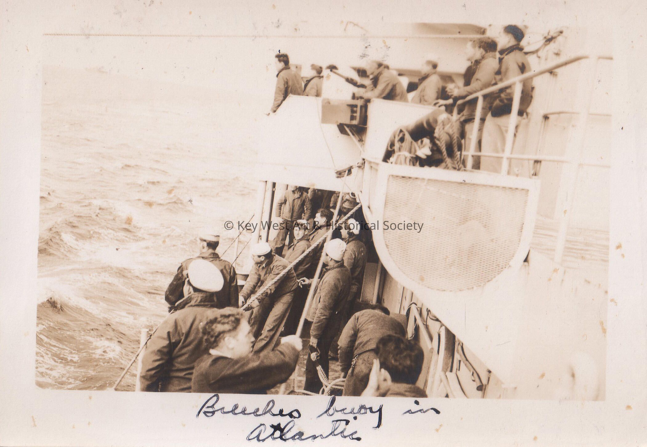 From the U.S.S. Key West (PF-17) in World War II; Breeches buoy in Atlantic.Collection