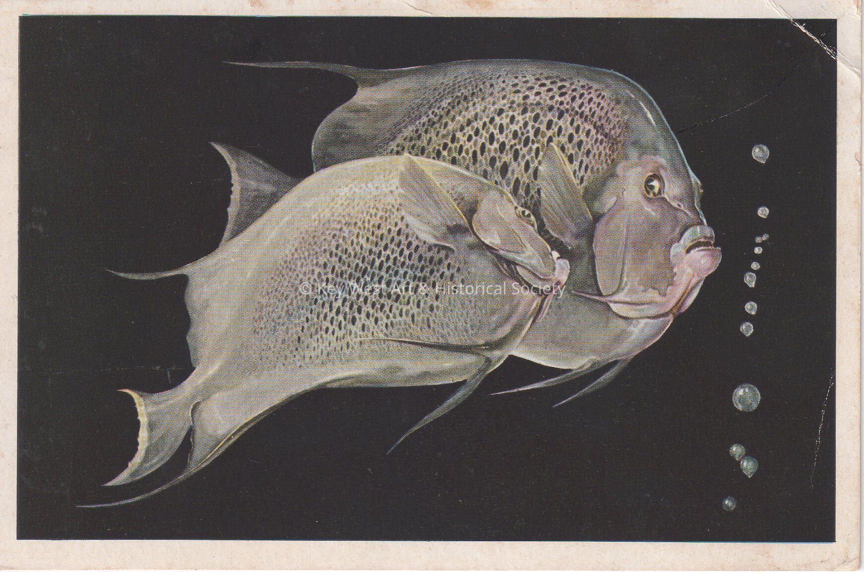 Postcard depicting a painting of two fish.  The description on the verso reads, ‘Black Angel Fish (Tropical Open-Air Aquarium)  Key West, Florida.’Collection