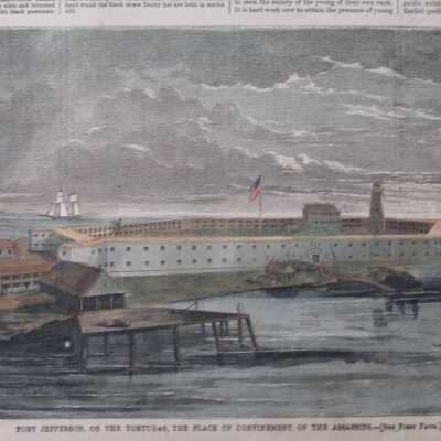 Page 541 and 542 in "Harpers Weekly" from August 26, 1965. Page 541 contains a picture of Ft. Jefferson as the "place of confinement of the assassins. Probably referring to Dr. Mudd and the Lincoln assassination,