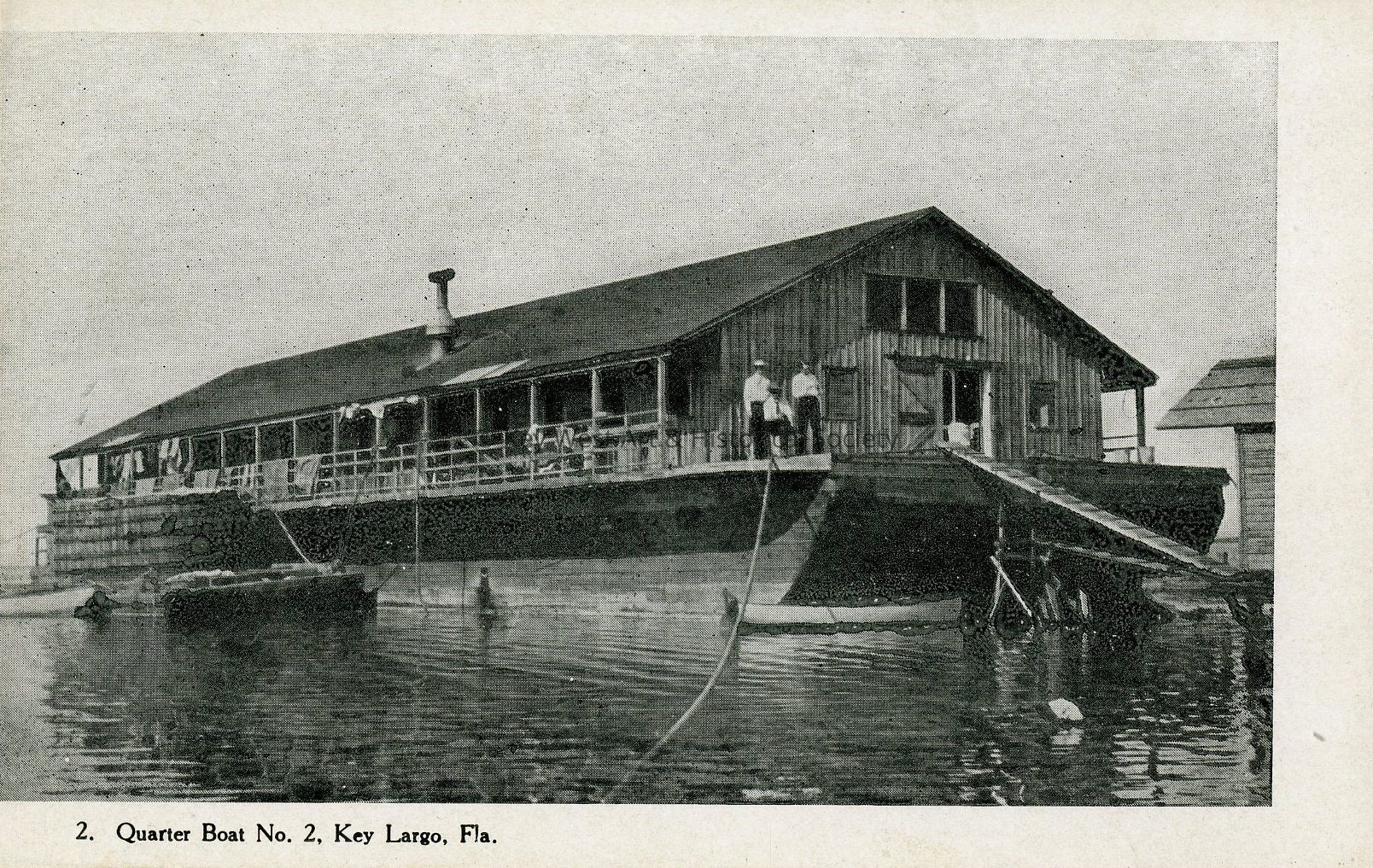Postcard depicting the construction of the Florida East Coast Railway's Oversea Extension, specifically Quarter Boat No.2 at Key Largo.  Number 2 of the F.E.C. Extension Series.Subject Person/Organization