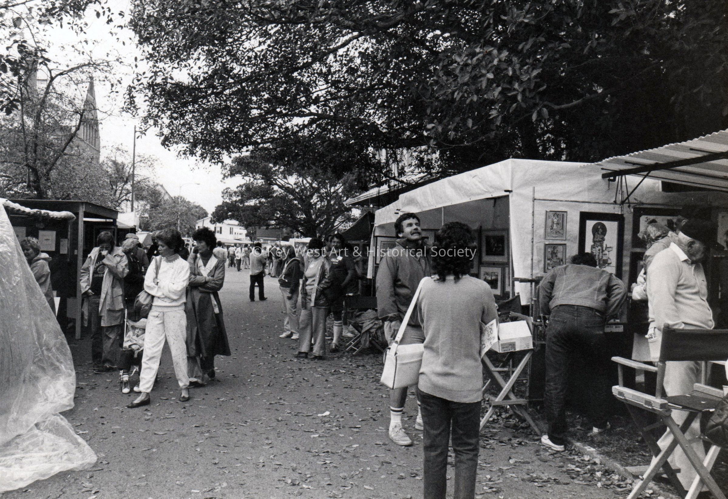 Black and white photograph of the Old Island Days Art Festival on Front Street.