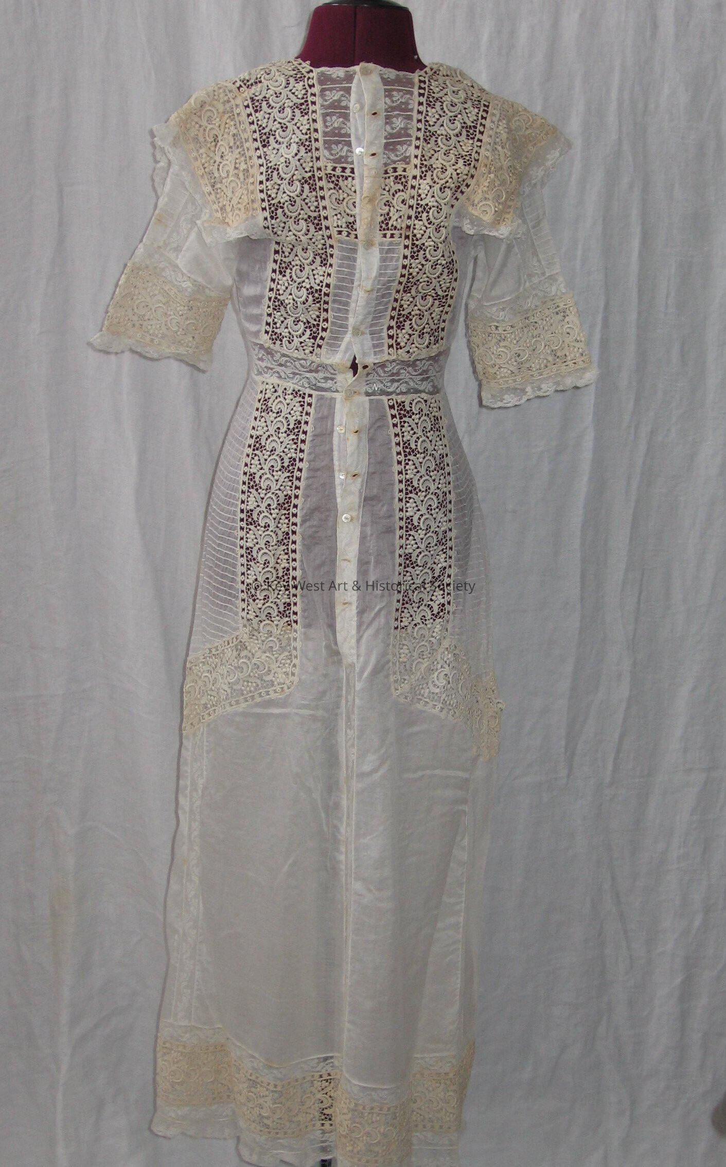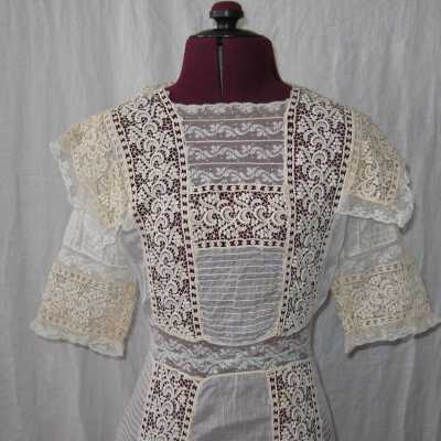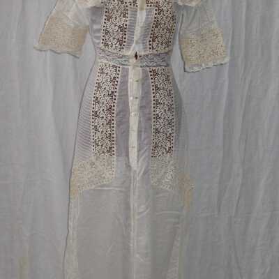 White cotton and lace dress meant to be layered. Button closure in the back.