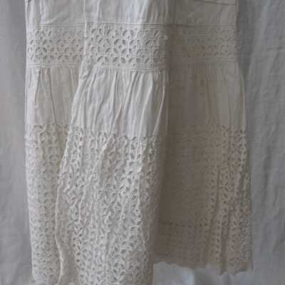 White skirt slip with a eyelet embroidery design on the bottom of the skirt.