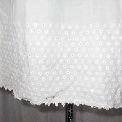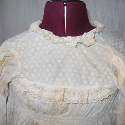 White cotton chemise nightgown with three quarter length sleeves. Eyelet lace and embroidered inset detailing.Collection