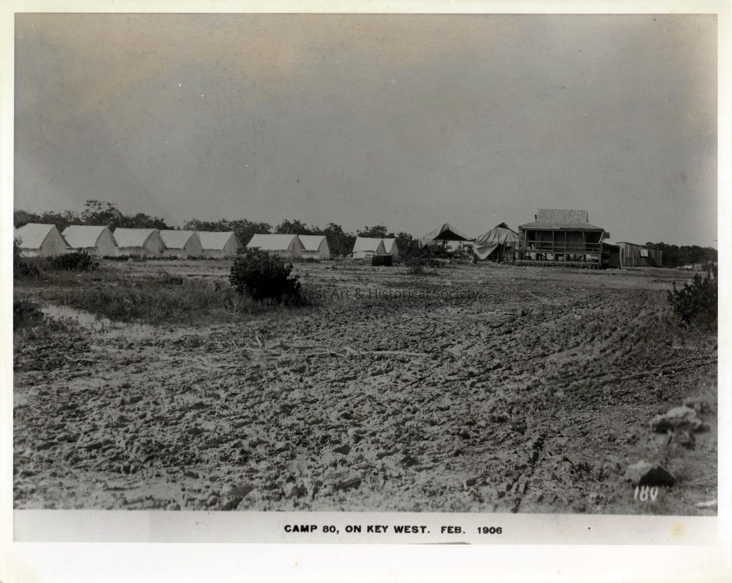 Black and white photograph of Florida East Coast Railway construction workers at Camp 80 on Key West.