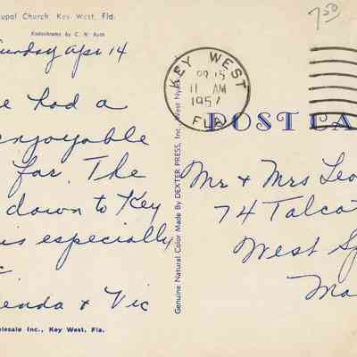 Postcard depicting Saint Paul's Episcopal Church in Key West, Florida. This church is located on the corner of Duval and Eaton Street.Collection
