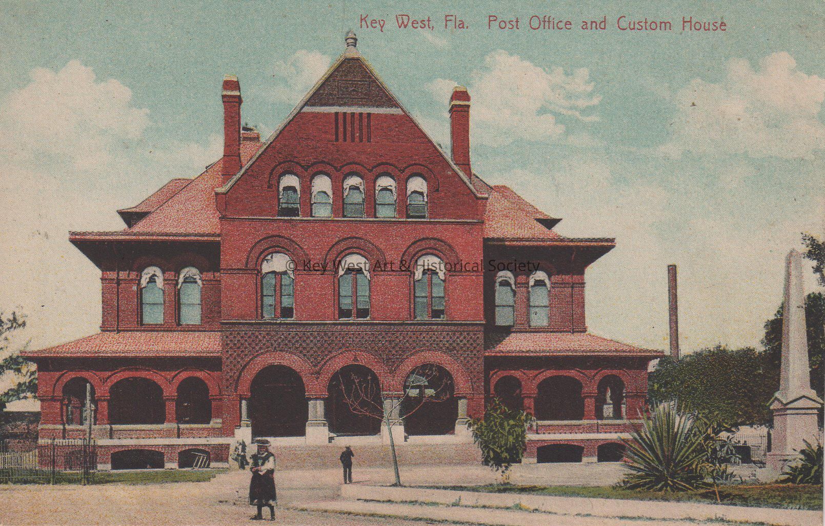 Postcard depicting the Key West Custom House and Post Office. The caption reads, ‘Key West, Florida, Post Office and Custom House’.Subject Place