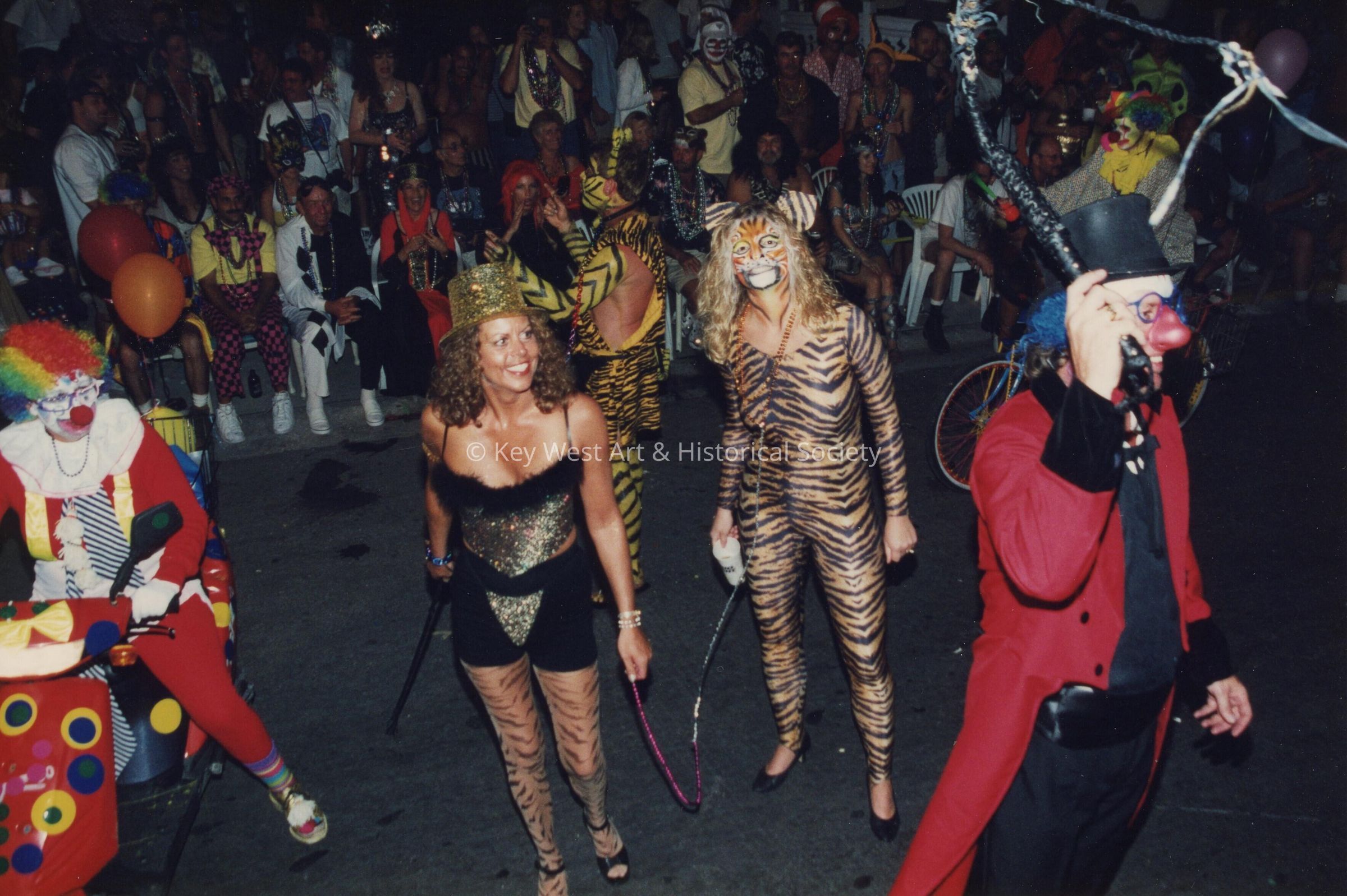 Unknown people dressed up walking in the street for the parade.Entry/Object ID
