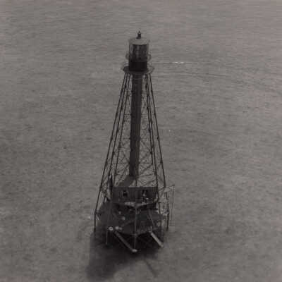 Black and white photograph of Sombrero Key Lighthouse off Marathon, Florida.Collection