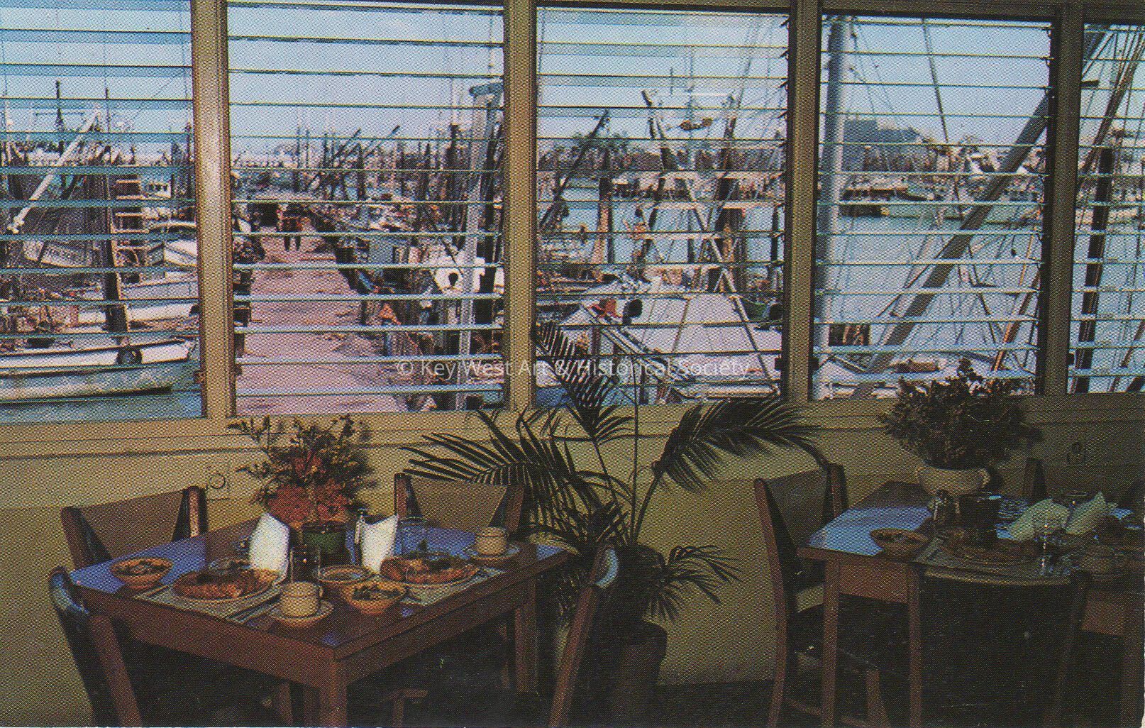 Postcard depicting a dockside restaurant. The description on the verso reads, ‘View of Harbor from dining room of the A&B Lobster House, Key West, Florida'.Subject Place