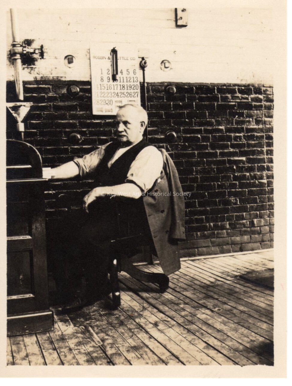 Black and white photo of a man sitting at a desk. Blackstone Gas and Electric Co.Collection