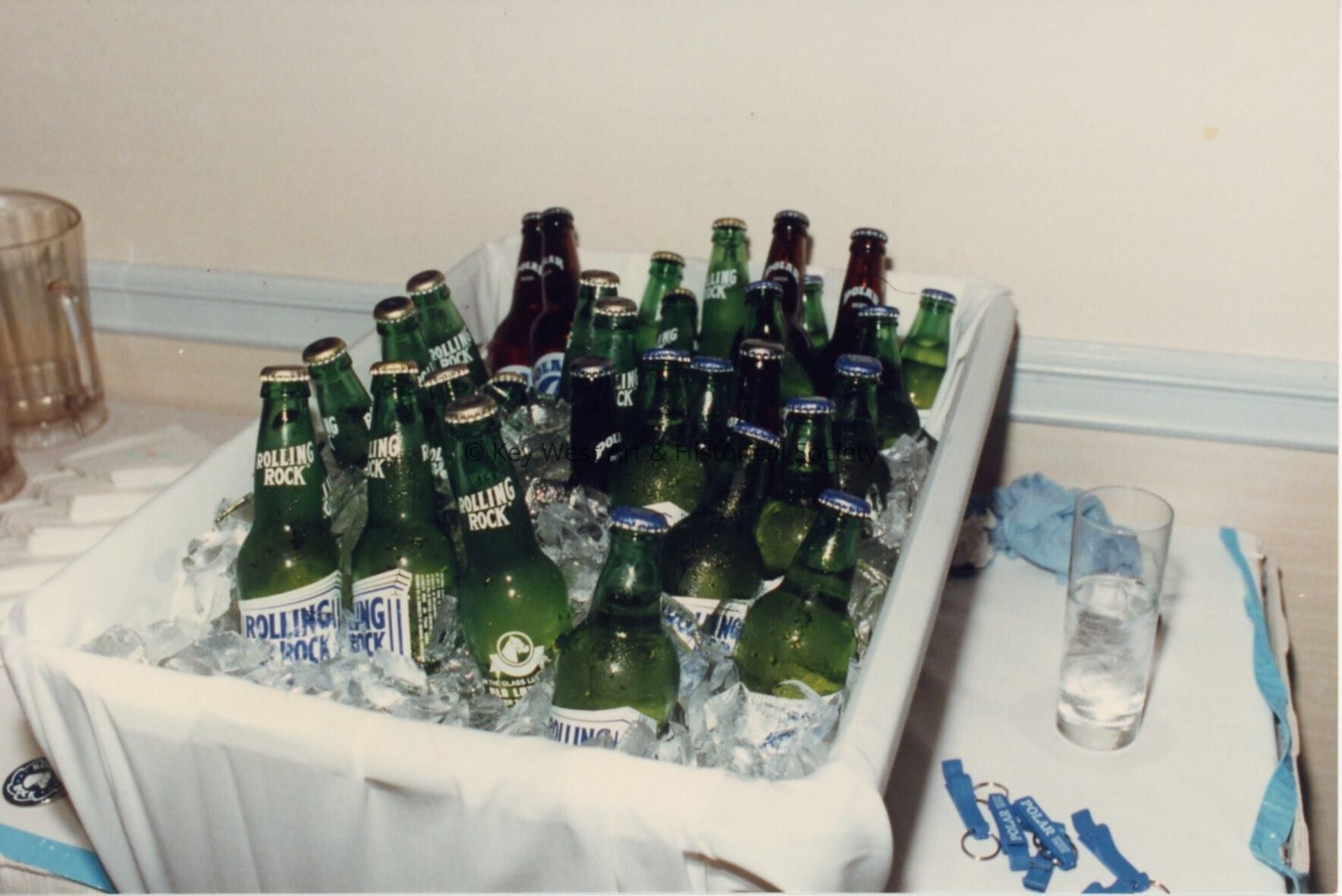 A bin holding rolling rock beer.