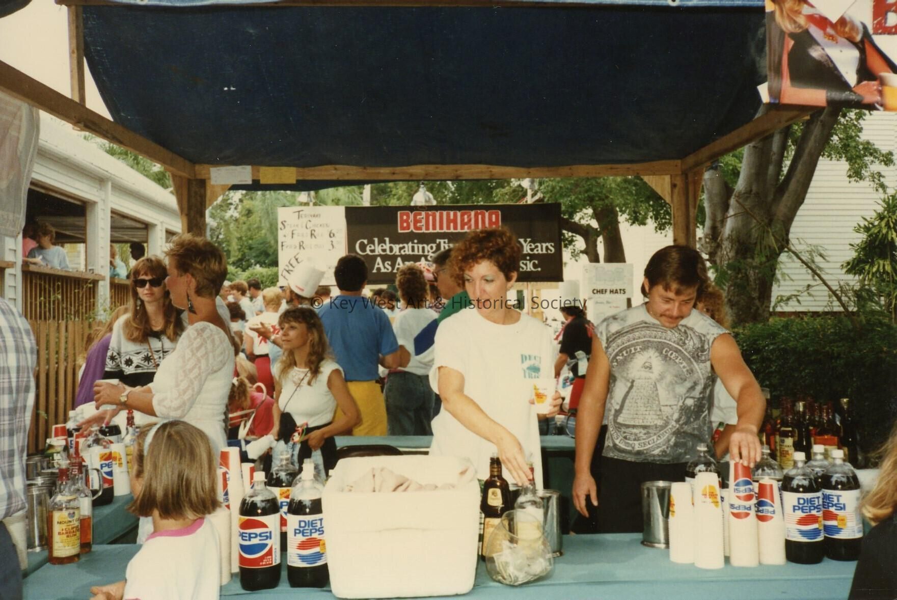 A booth selling alcohol and soda.