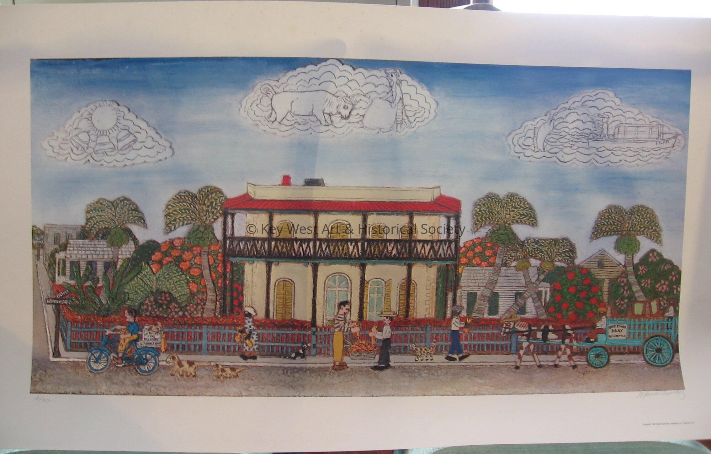 Colored print on paper. Number 2 of 350, signed and stamped in lower right corner. Scene of the Hemingway house. Print is taken from A Famous Key West Landmark 1987.01.3210.Type of Print