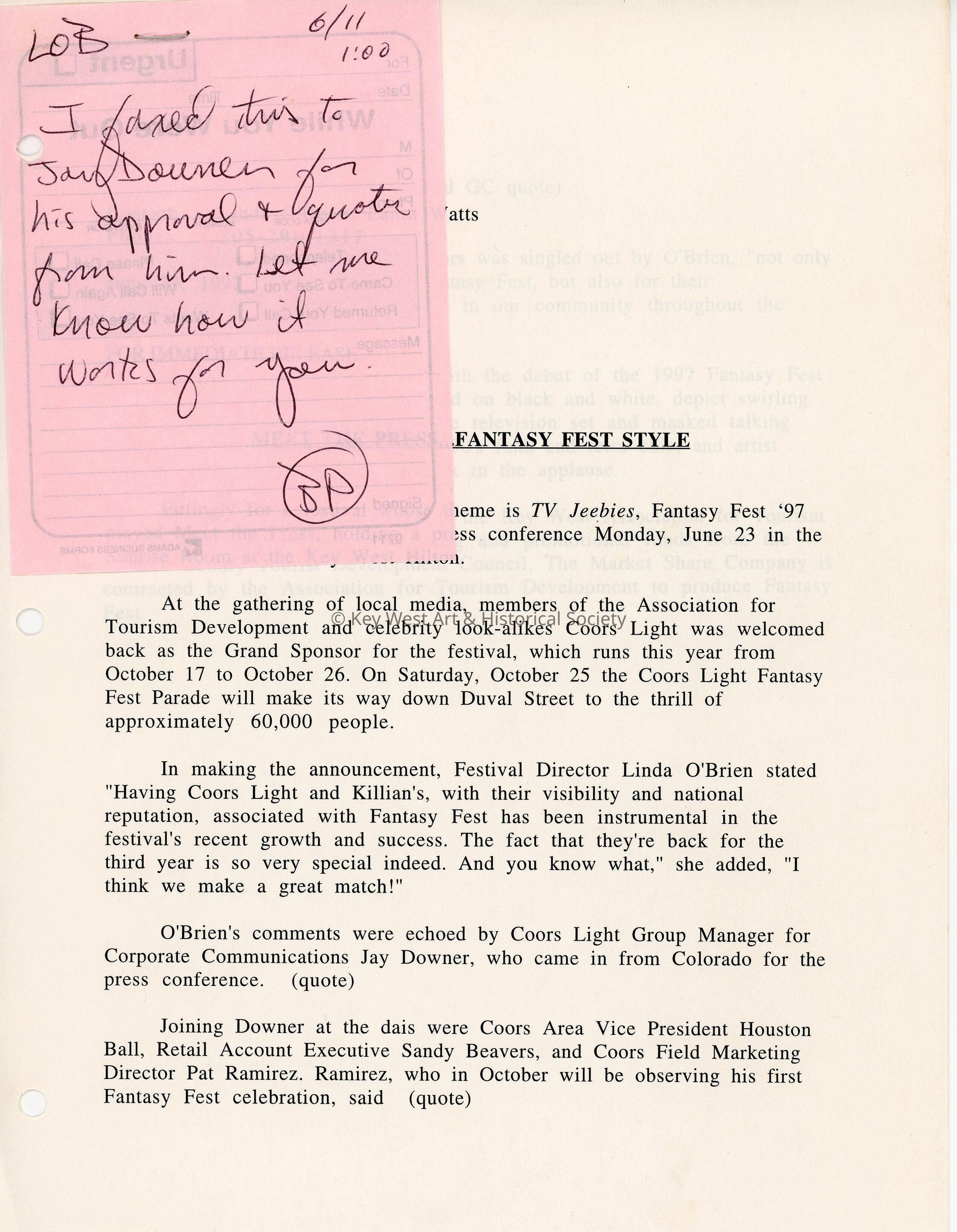 A fax to Jay Douner from Linda O'Brien and Laura Lewis that reads Meet the Press.