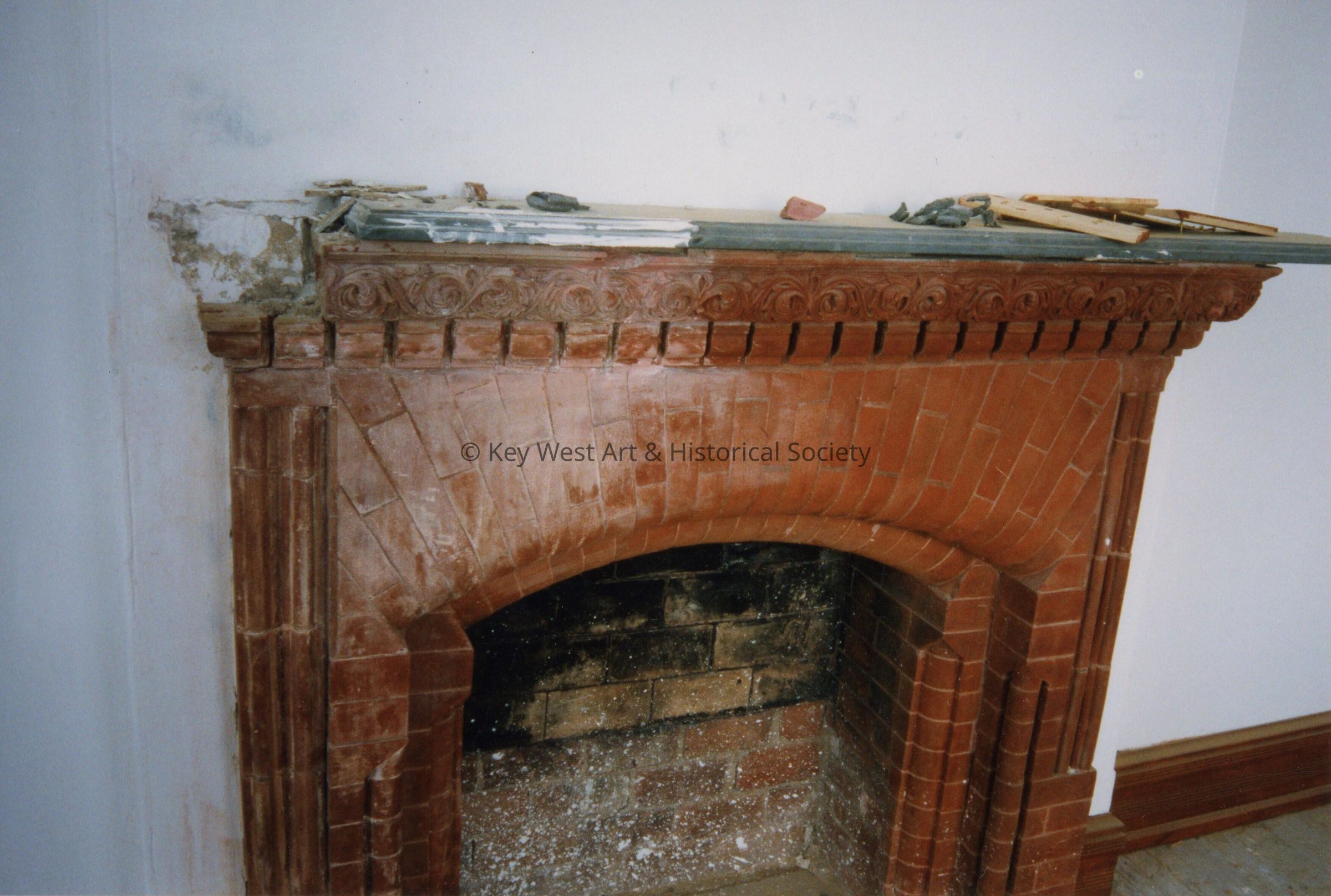 A fireplace.