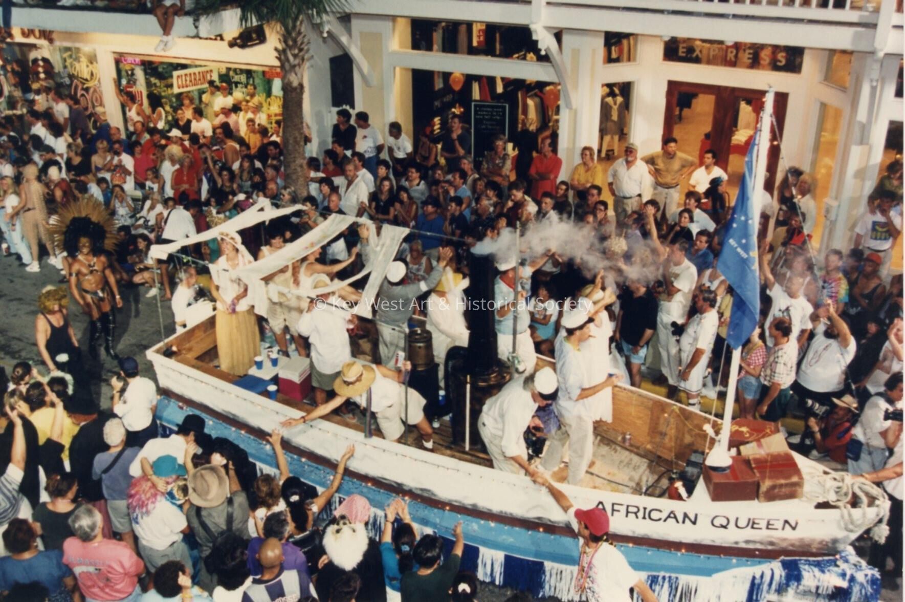 A float in the parade that reads African Queen.Collection
