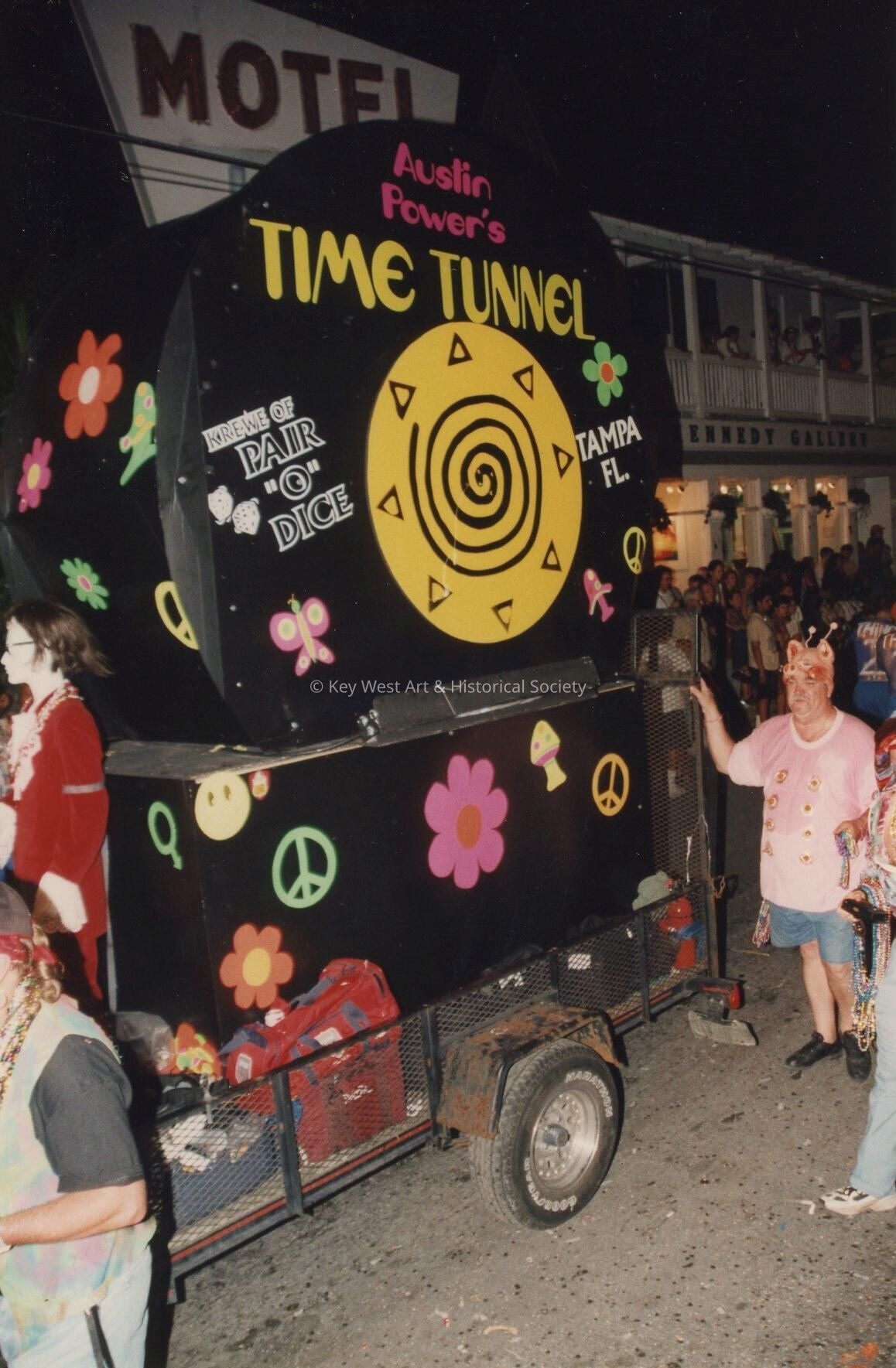 A float in the parade that reads Austin Powers time tunnel.Collection