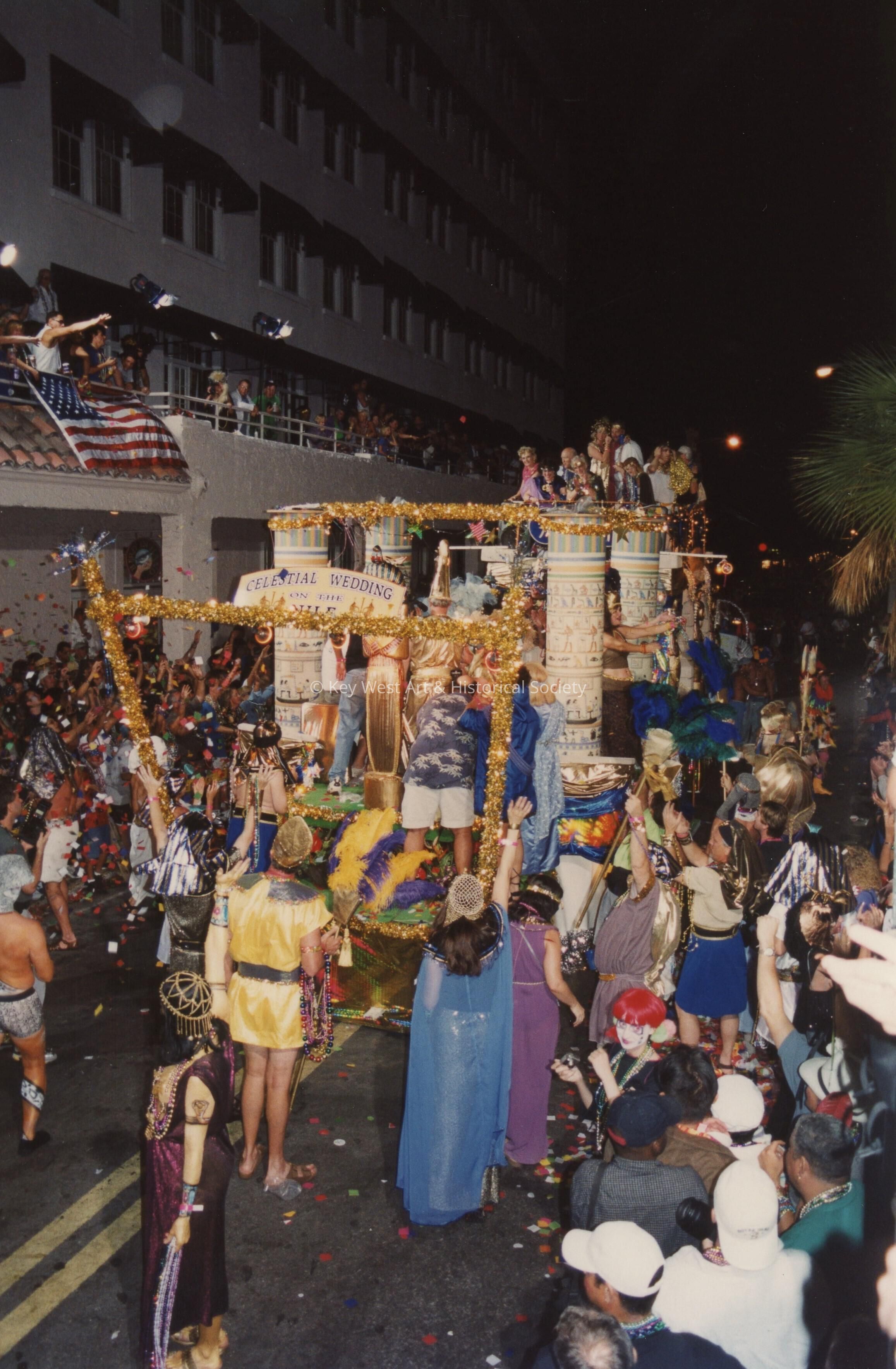 A float in the parade that reads Celestial Wedding on the Nile.Collection