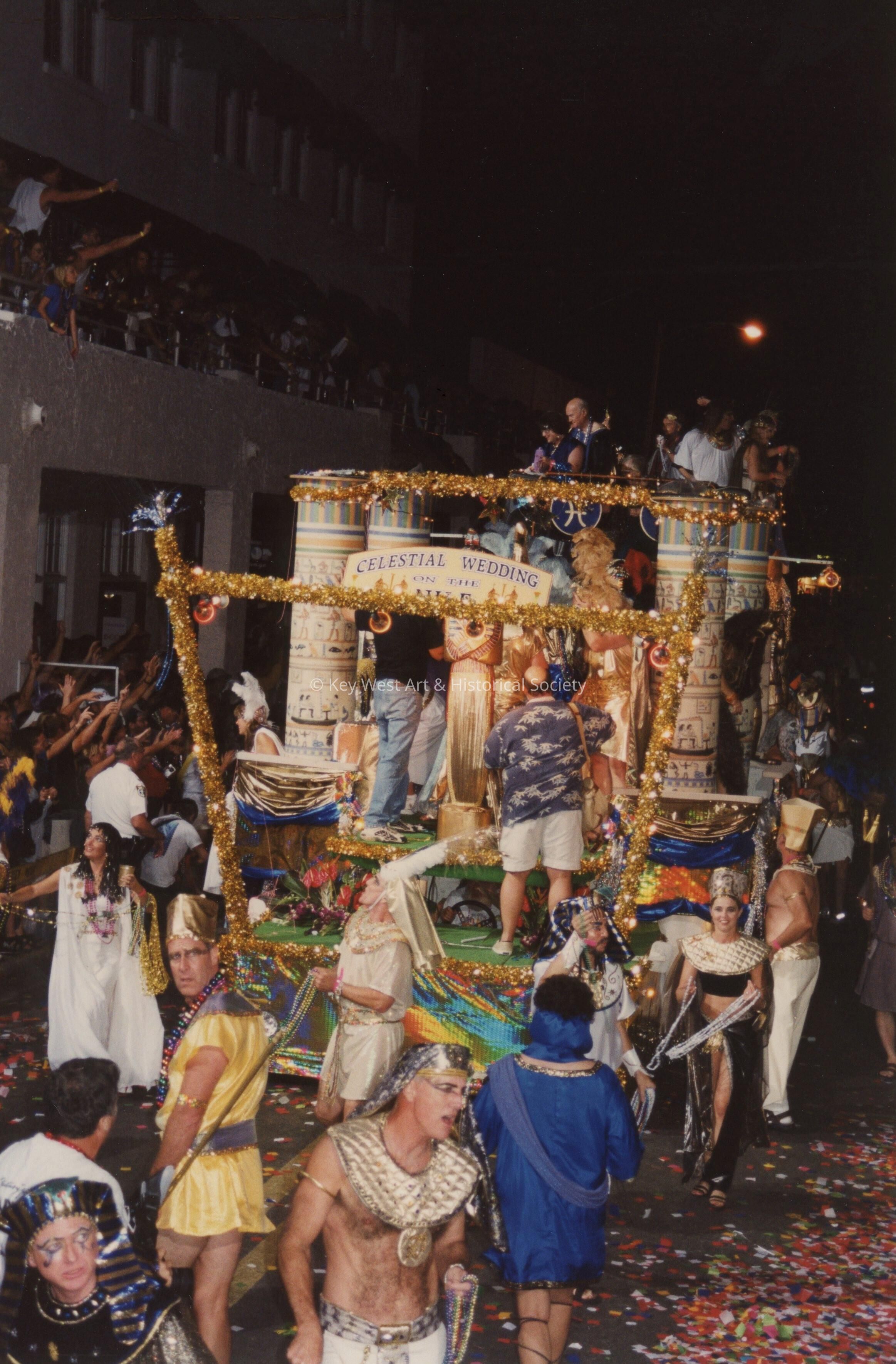 A float in the parade that reads Celestial Wedding on the Nile.Collection