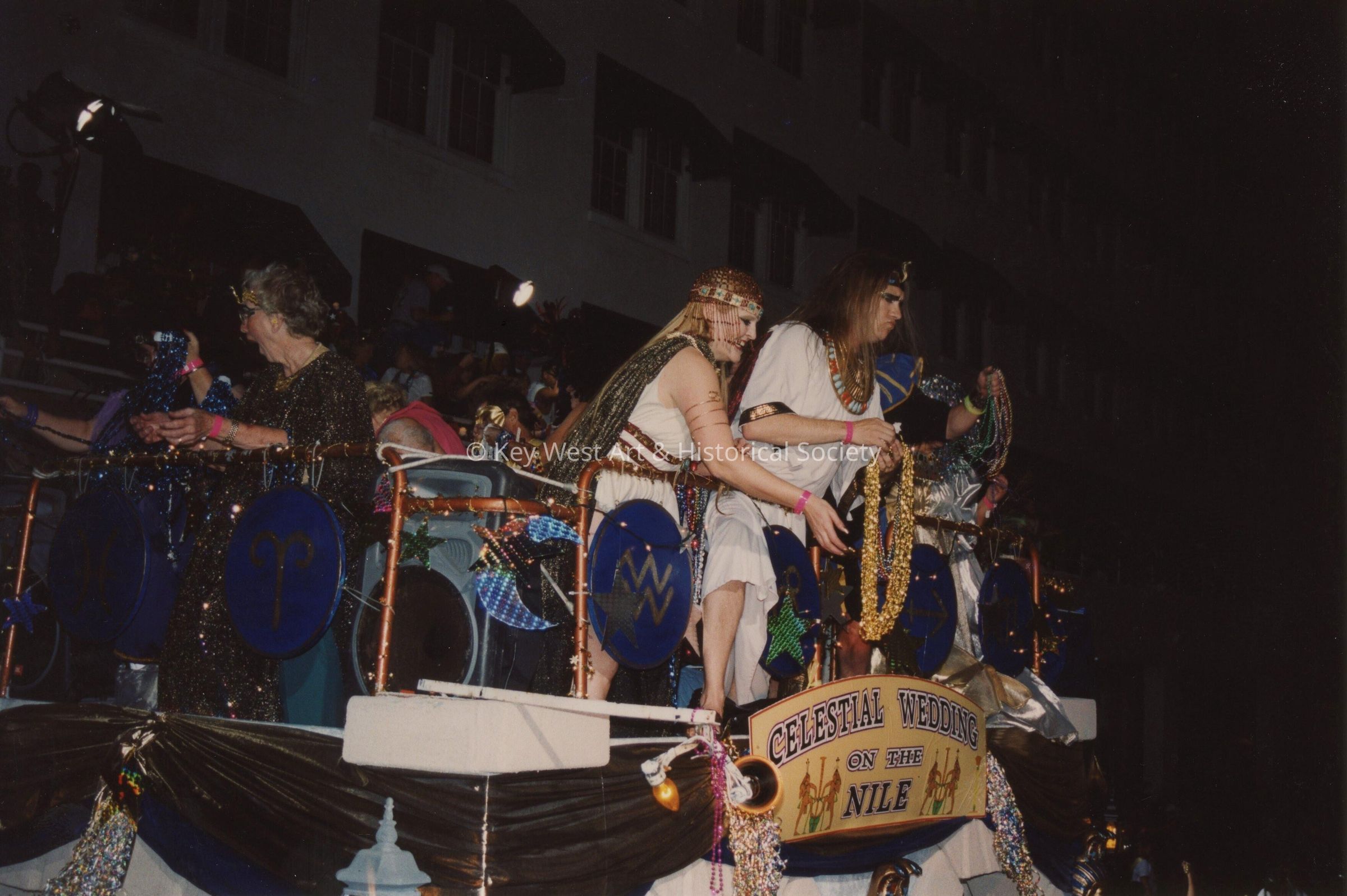 A float in the parade that reads Celestial Wedding on the Nile.Collection