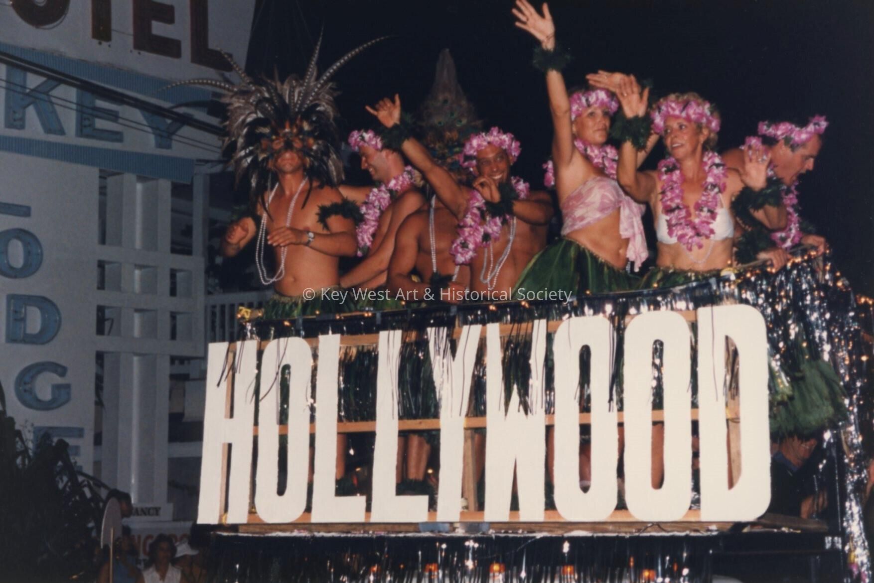 A float in the parade that reads Hollywood on the front.Collection
