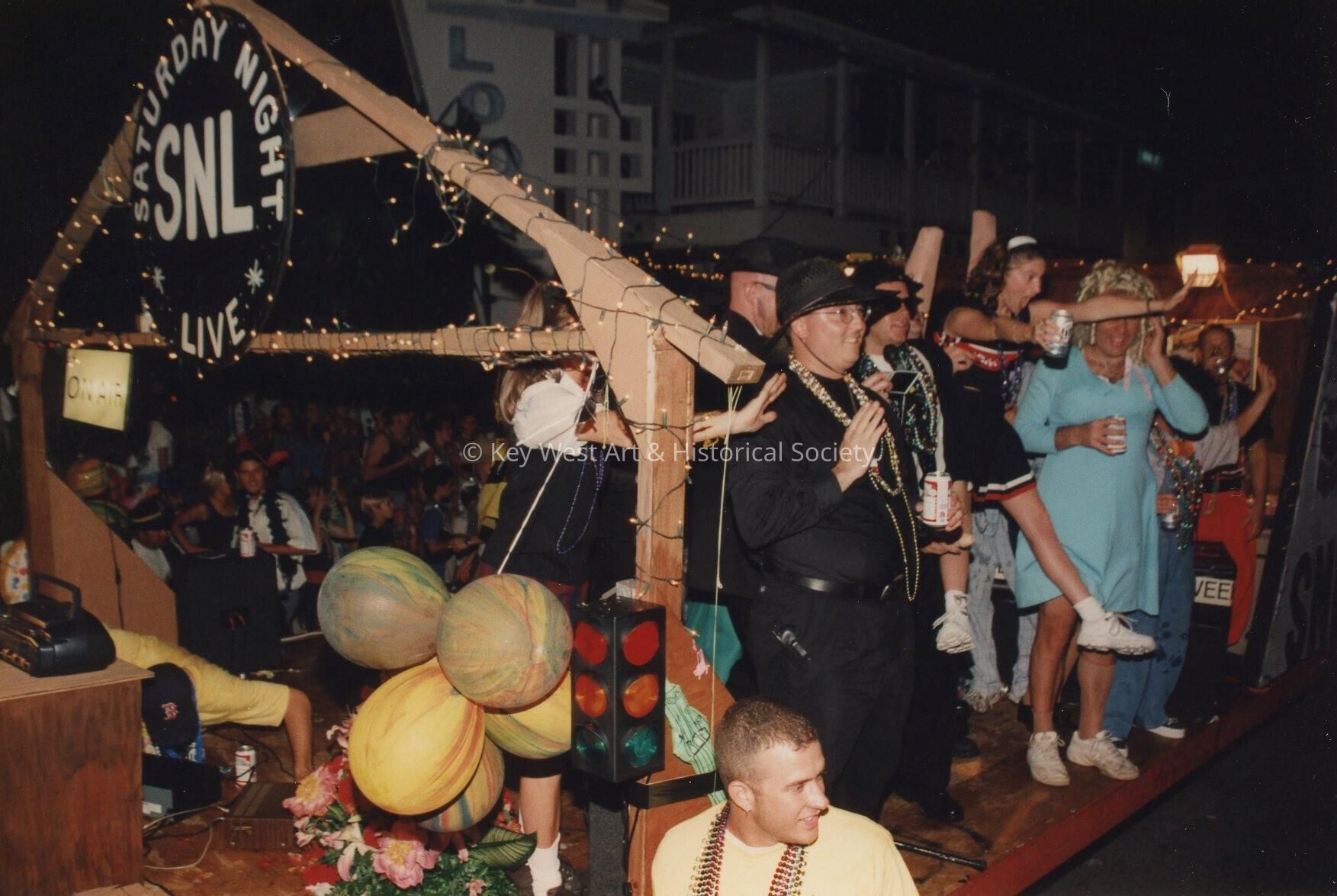 A float in the parade that reads Saturday night live.Collection