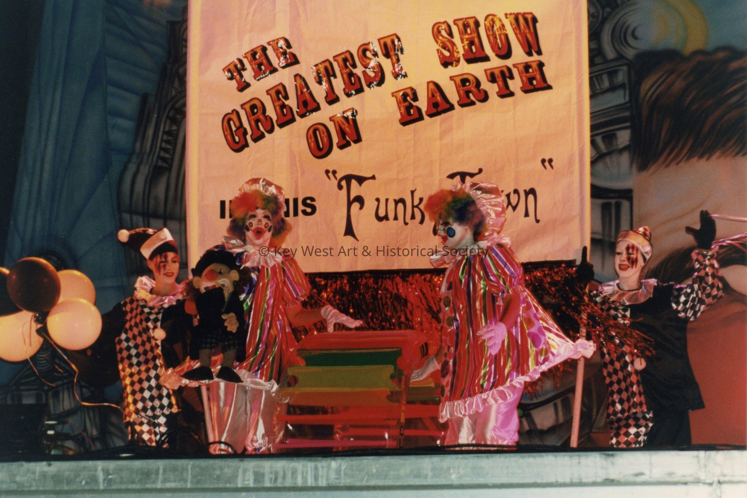 A float in the parade that reads, The greatest show on earth.Entry/Object ID