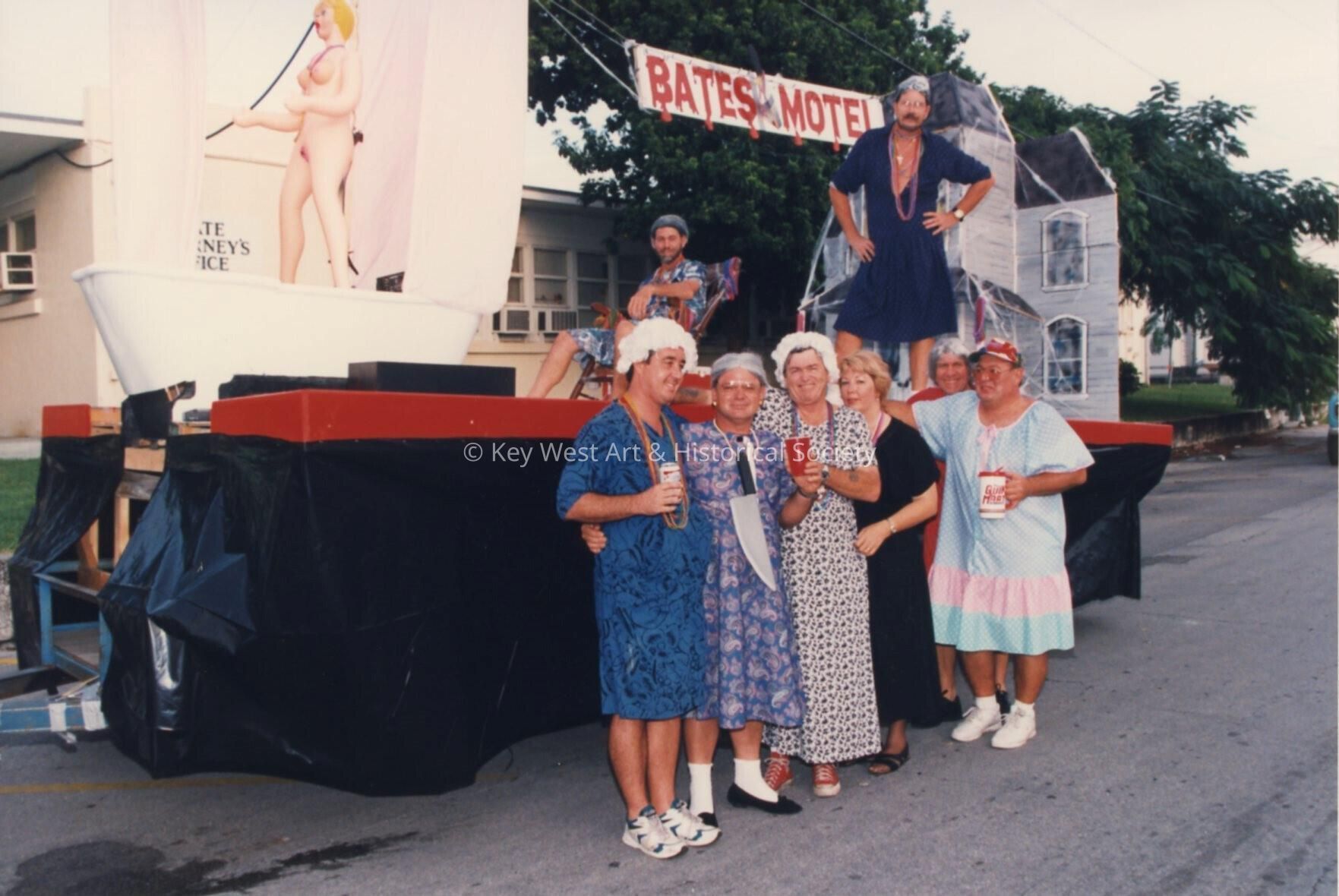 A float that reads Bates Motel.