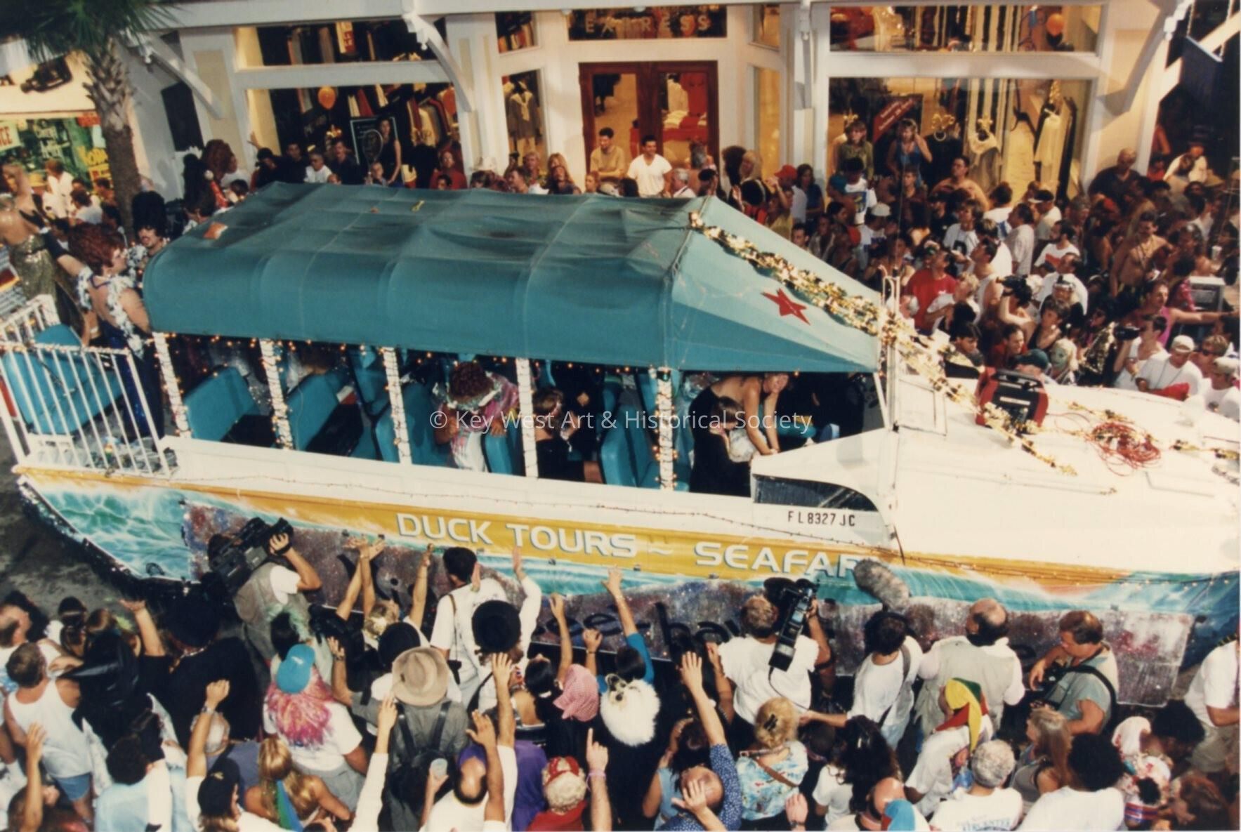 A float that reads Duck tours on the side.