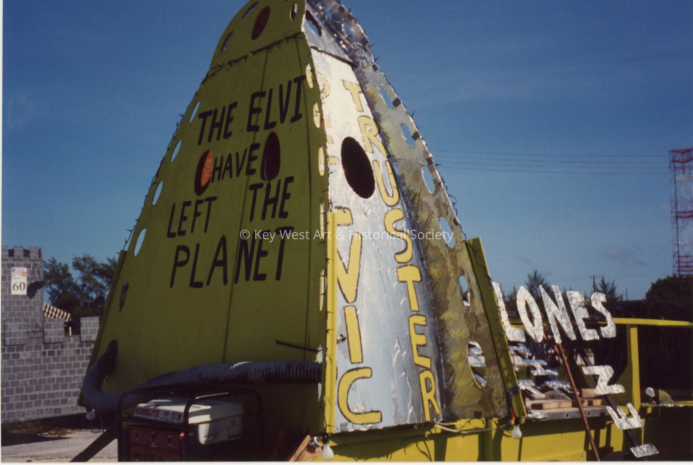 A float that will be in the parade that reads the elvi have left the planet.Entry/Object ID