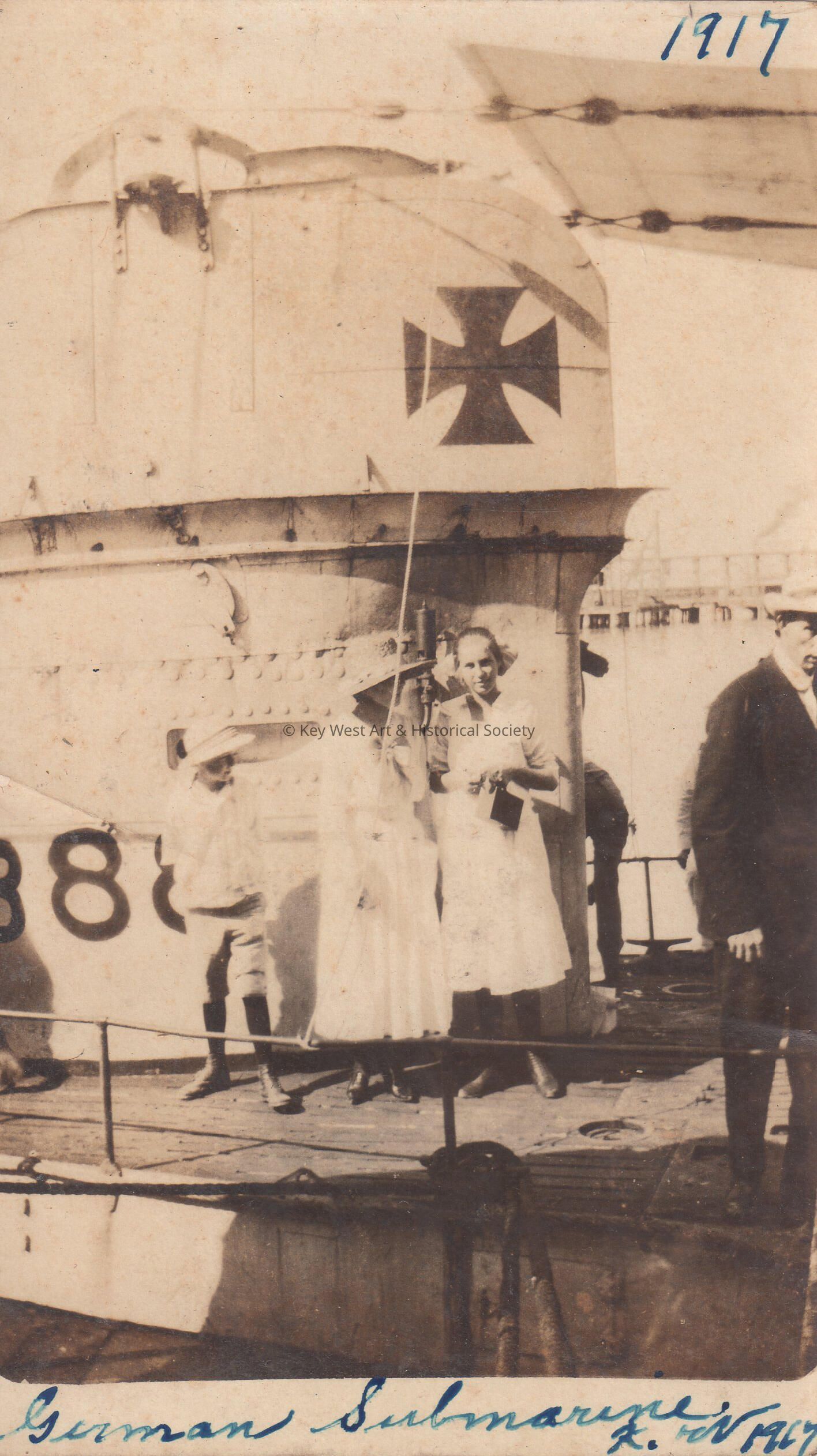 A German submarine docked in Key West in 1917, during World War I.Collection
