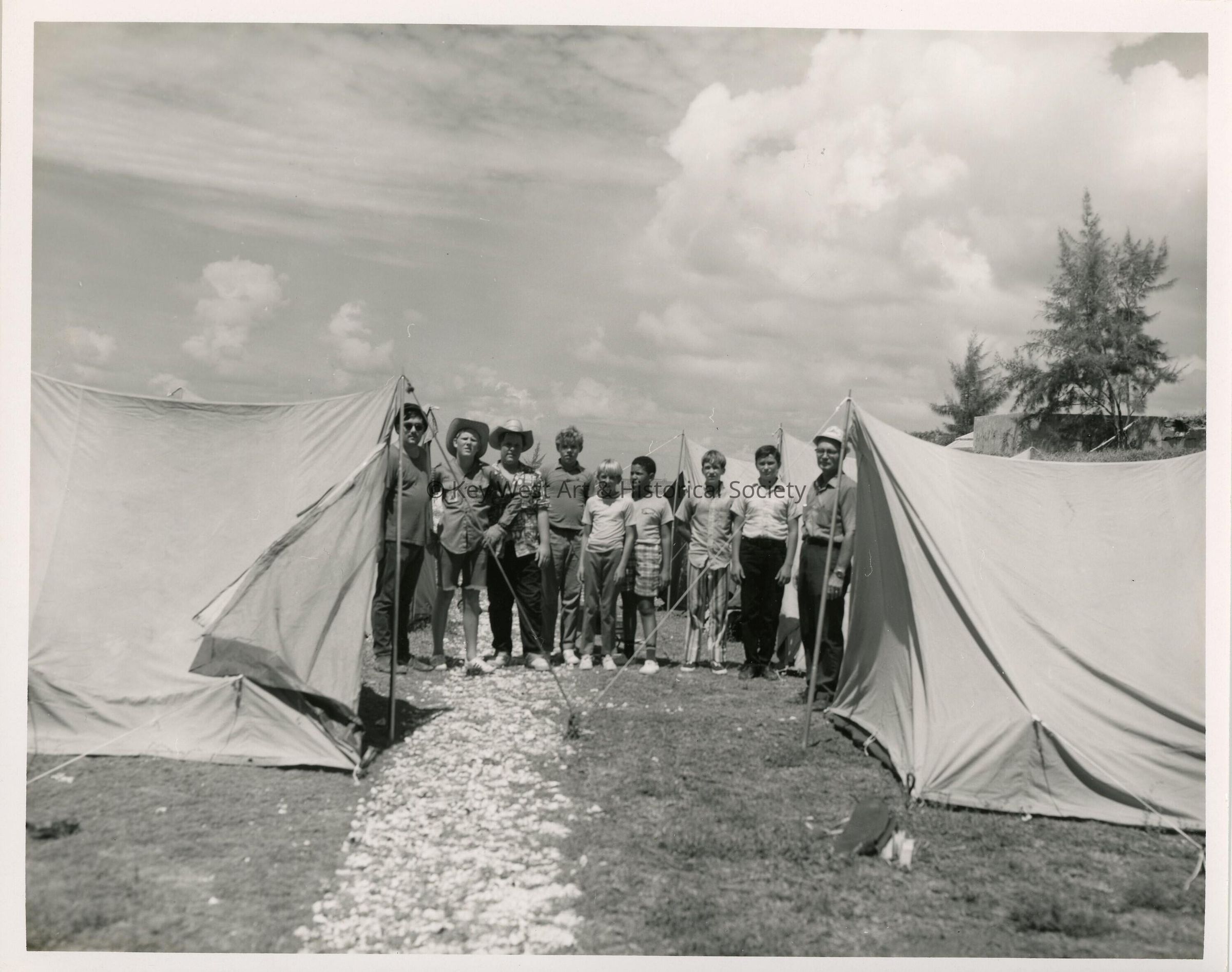 A group of unknown men and children standing next to tentsEntry/Object ID
