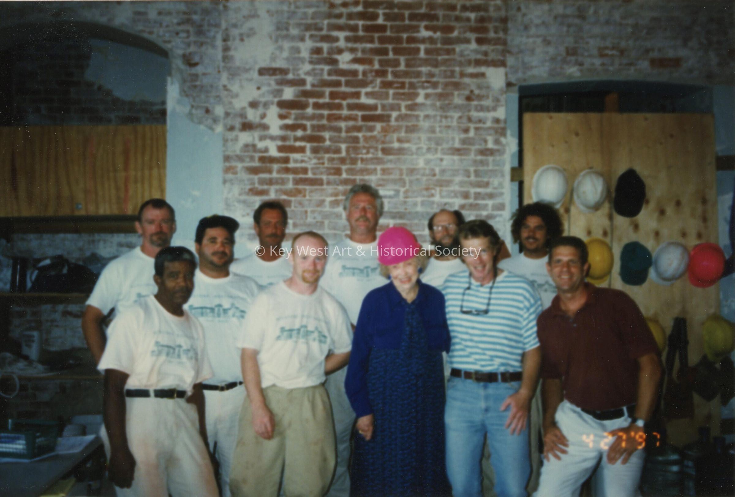 A group of unknown men standing with Wilhelmina Harvey inside of the Custom House.Collection