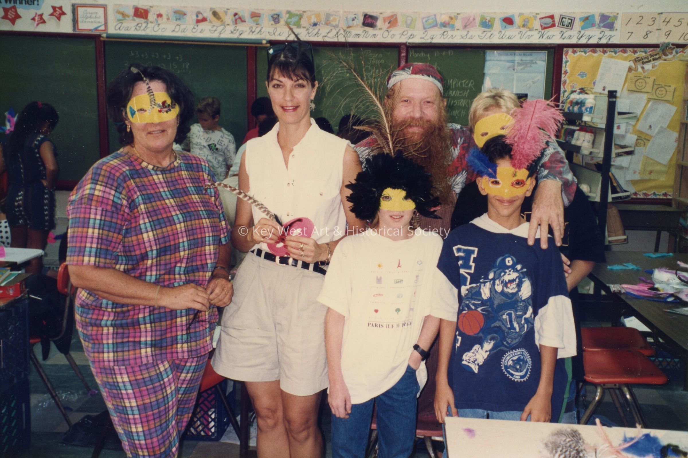 A group of unknown people at a school.