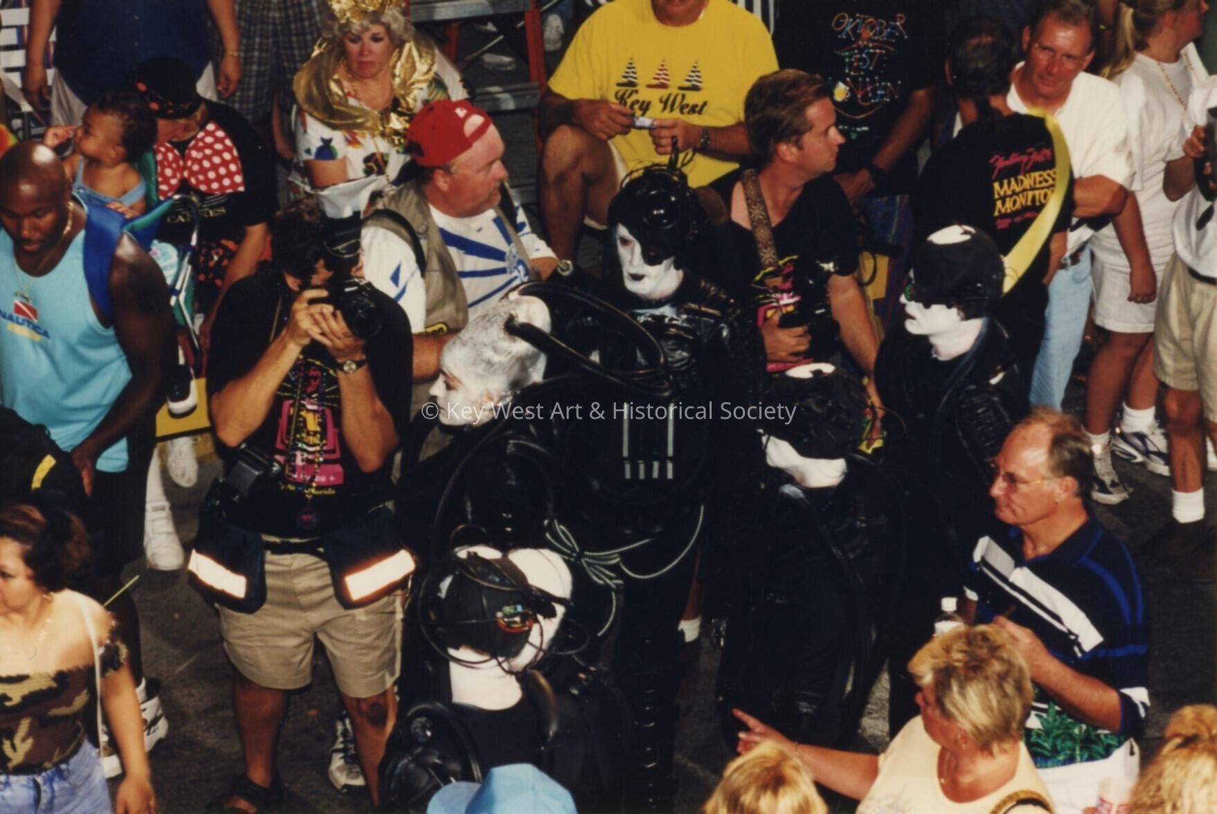 A group of unknown people dressed up walking in the street.Collection