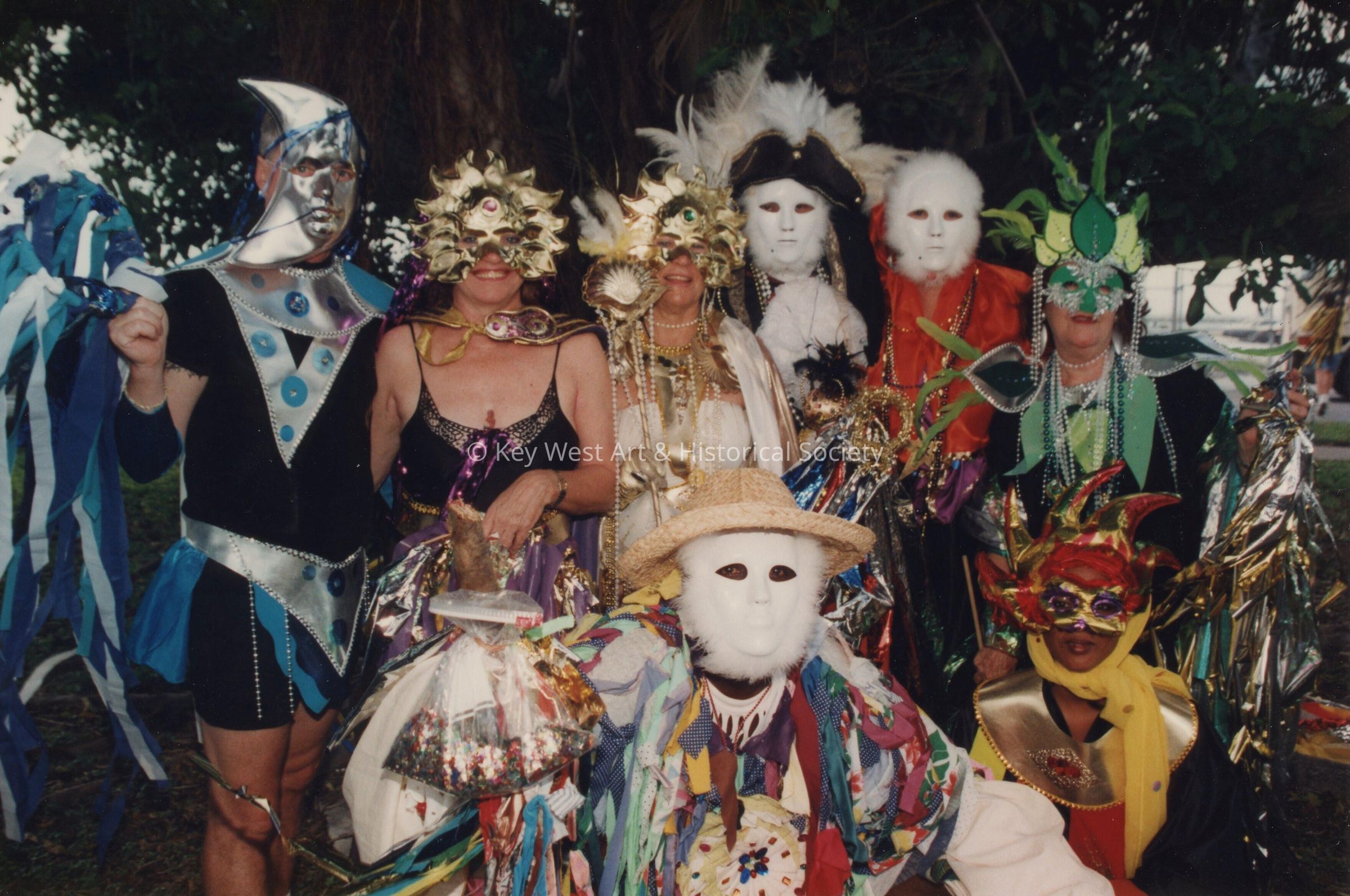 A group of unknown people dressed up.