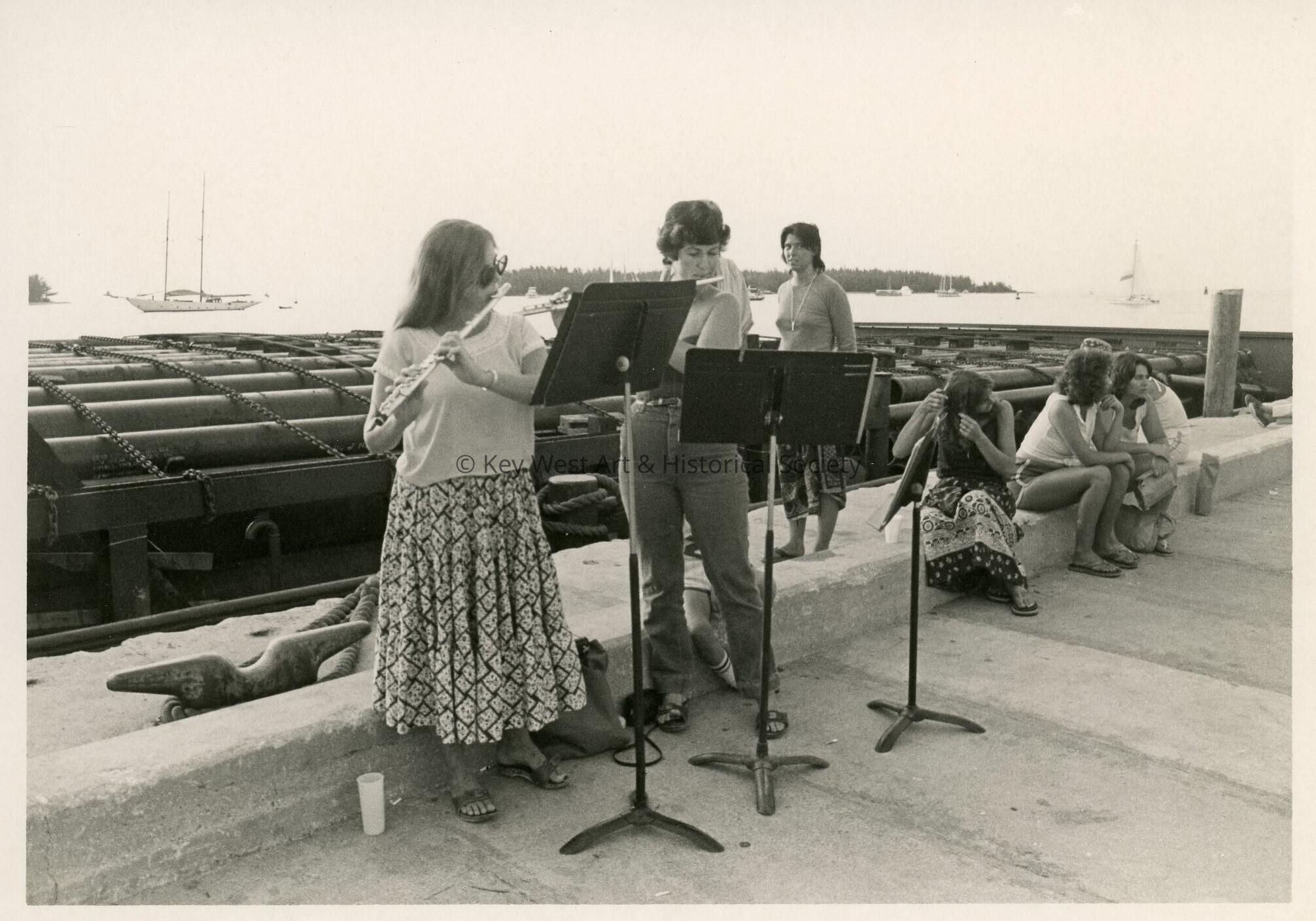 A group of unknown people playing flutes