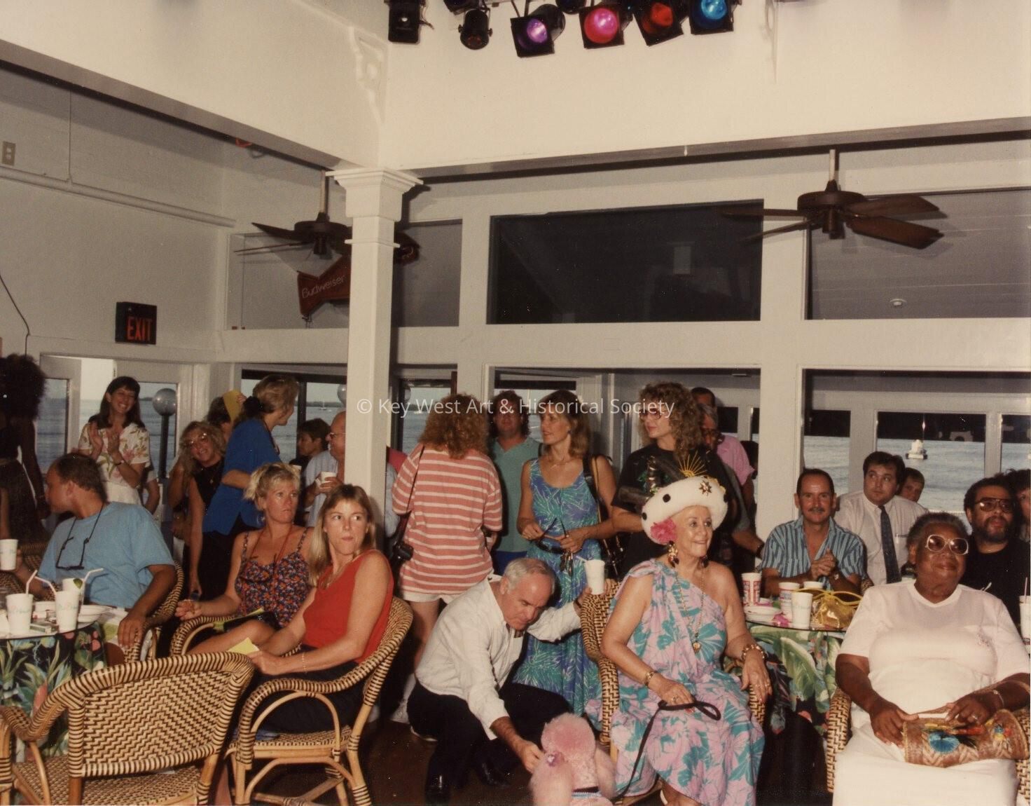 A group of people standing and sitting. Featuring Pat Green and Tallulah the Pink Poodle.Collection