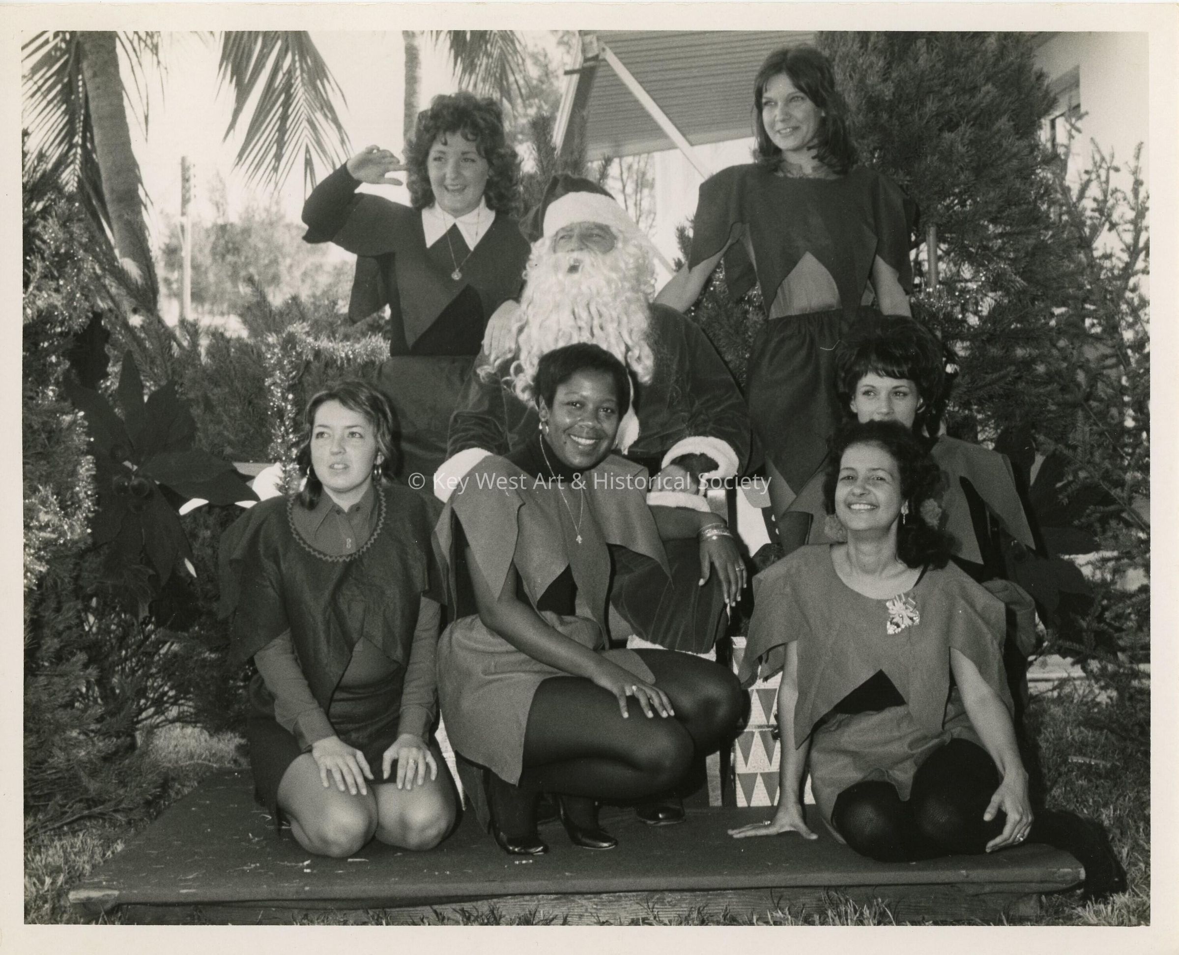 A group of woman sitting with Santa Claus