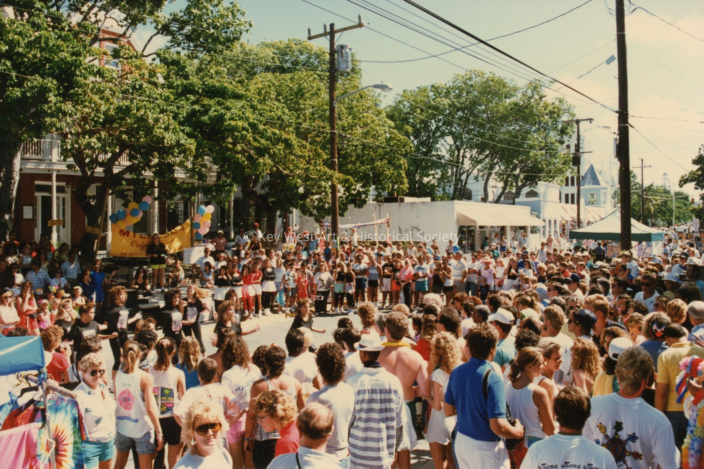 A huge group of unknown people in the street in front of the Woman's club on Duval street.Entry/Object ID