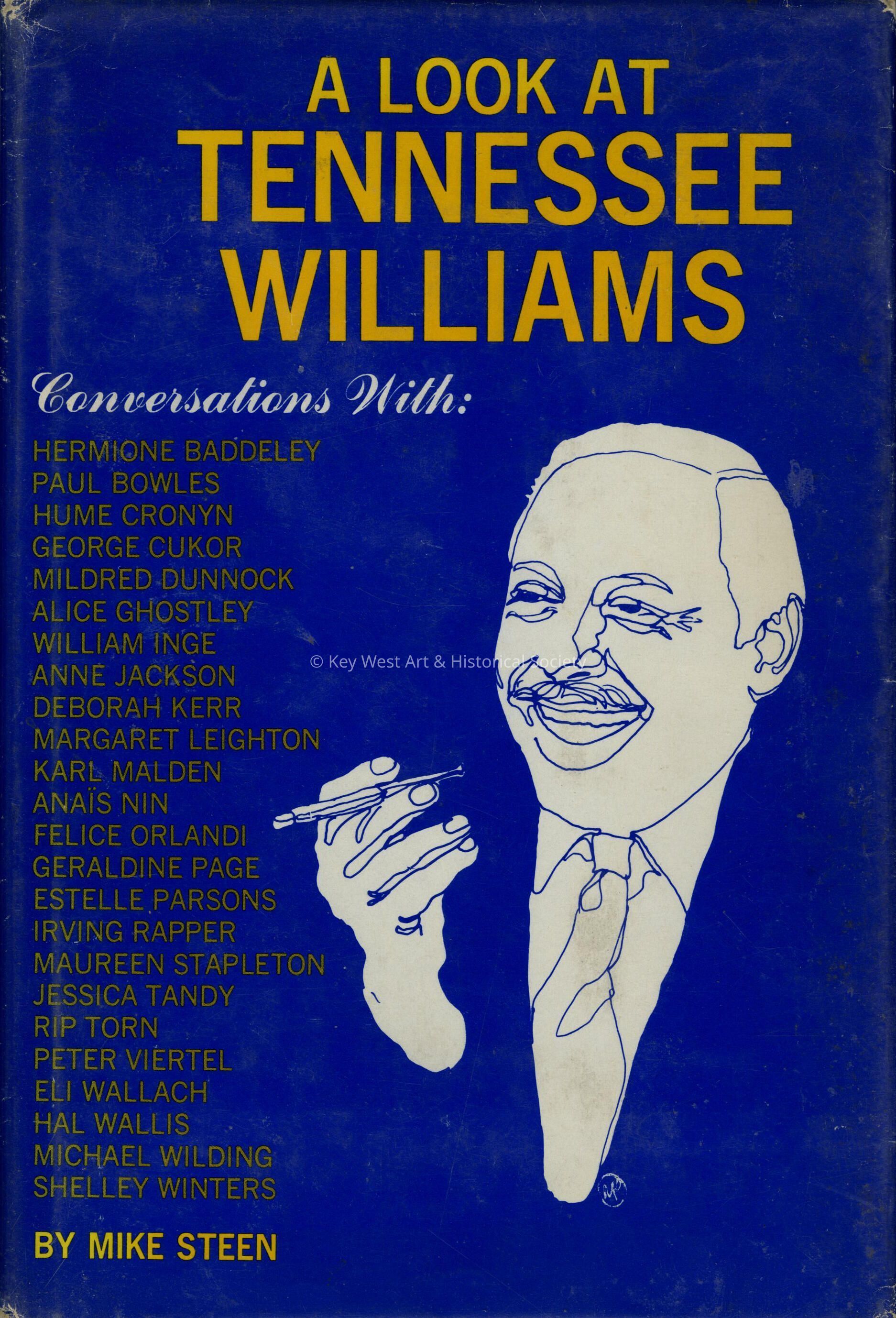 A Look at Tennessee Williams. Conversations with Hermione Baddeley, Paul Bowles, Hume Cronyn, George Cukor, Mildred Dunnock, Alice Ghostley, William Inge, Anne Jackson, Deborah Kerr, Margaret Leighton, Karl Malden, Anais Nin, Felice Orlandi, Geraldine Page, Estelle Parsons, Irving Rapper, Maureen Stapleton, Jessica Tandy, Rip Torn, Peter Viertel, Eli Wallach, Hal Willis, Michael Wilding and Shelley Winters.