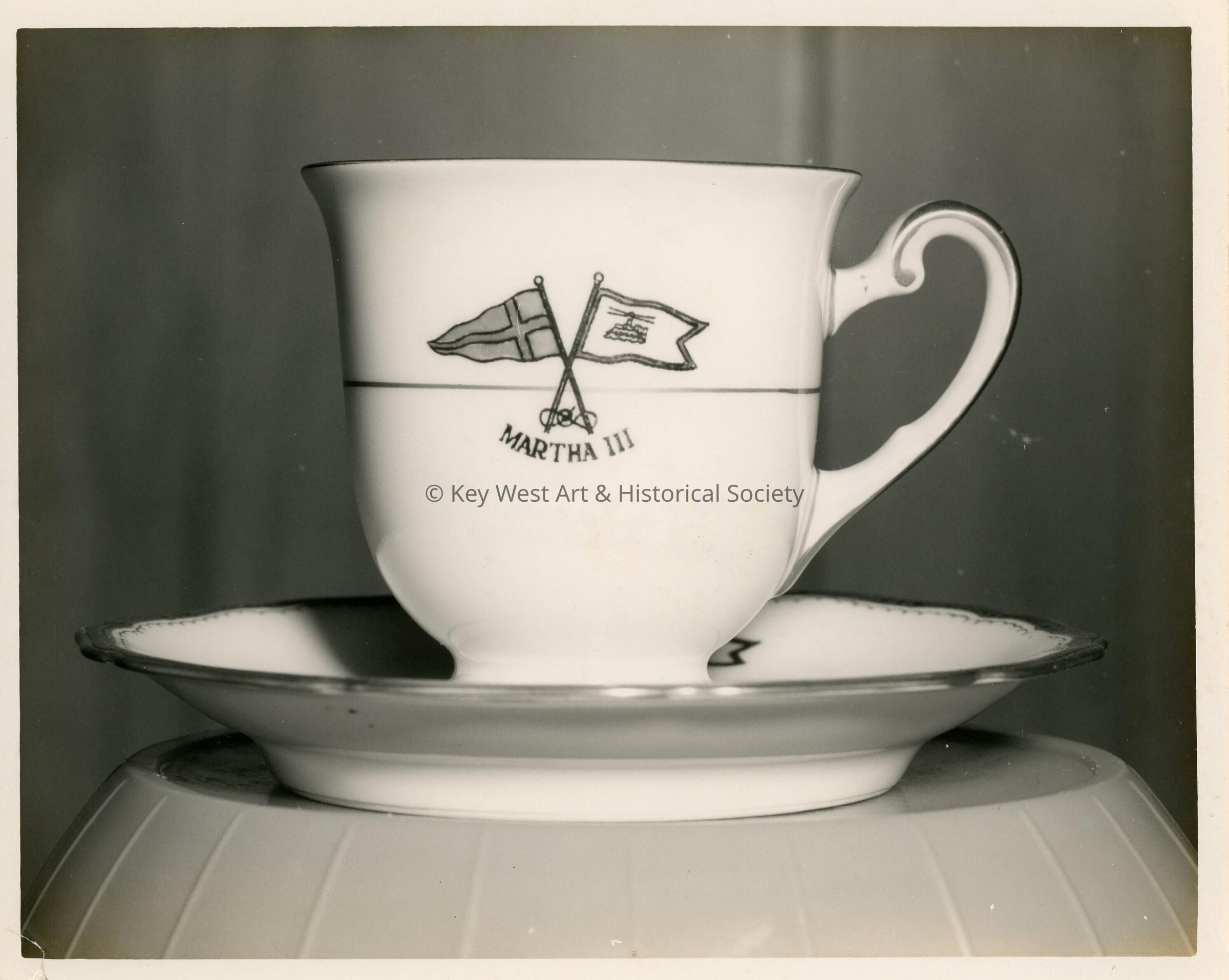 A mug and plate, that reads Martha III.Collection