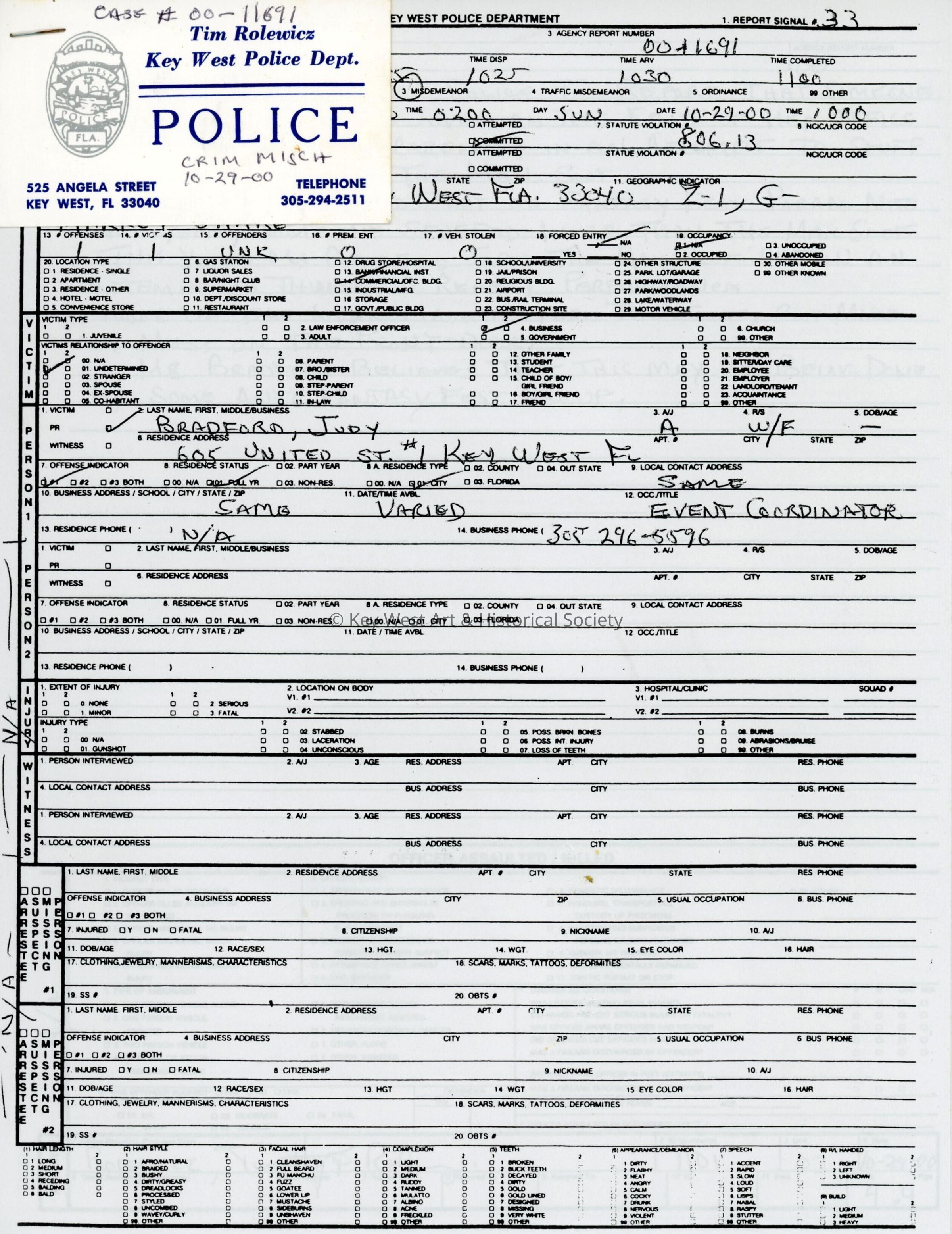 A police report filed by Judy Bradford.