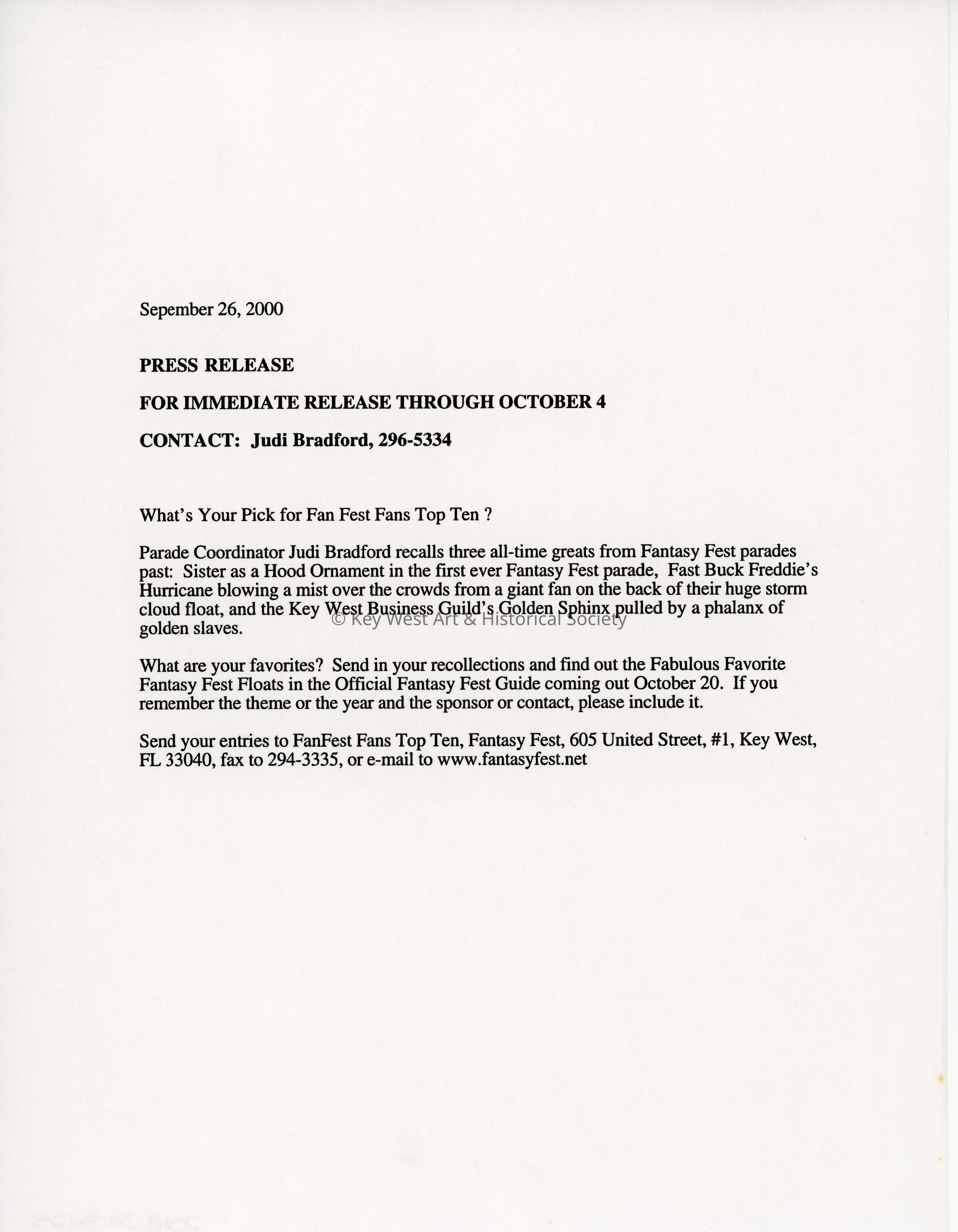 A press release looking for prior favorite parade floats.