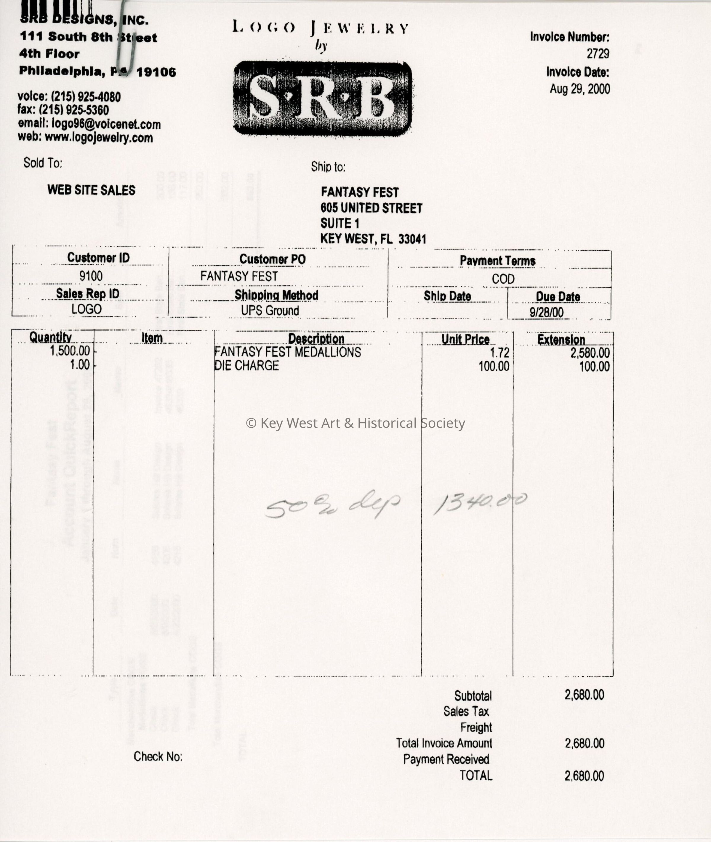 A receipt for the Fantasy Fest medallions.