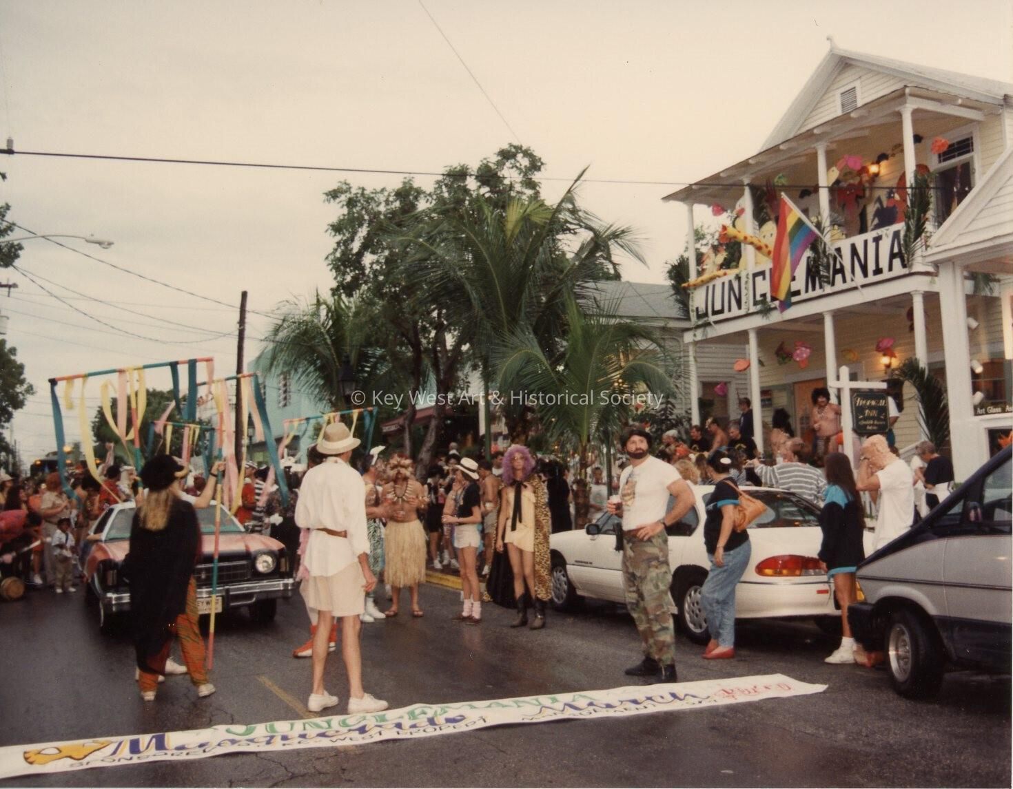 A street parade. In front of The Tropical Inn. Featuring Stretch